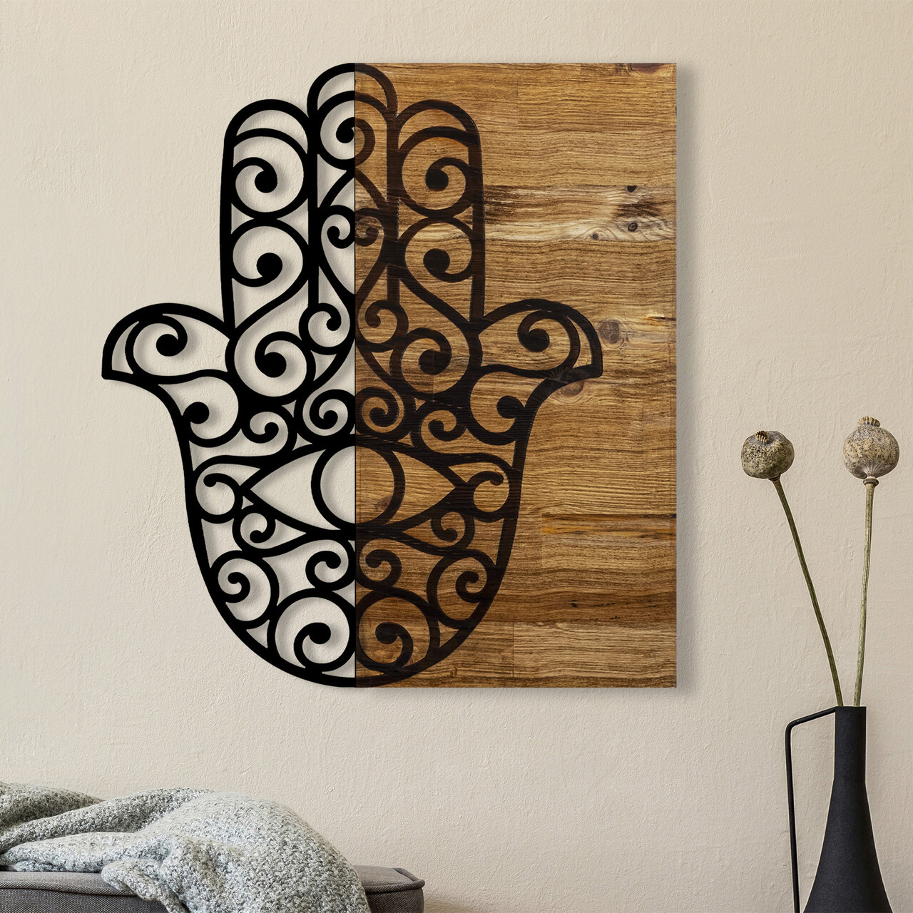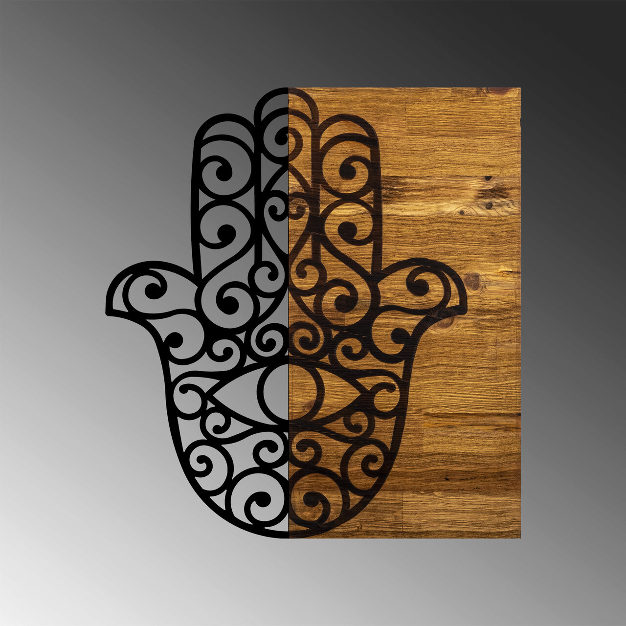 Decoratiune de perete, Hamse, Metal/lemn, Dimensiune: 46 x 3 x 58 cm, Nuc / Negru