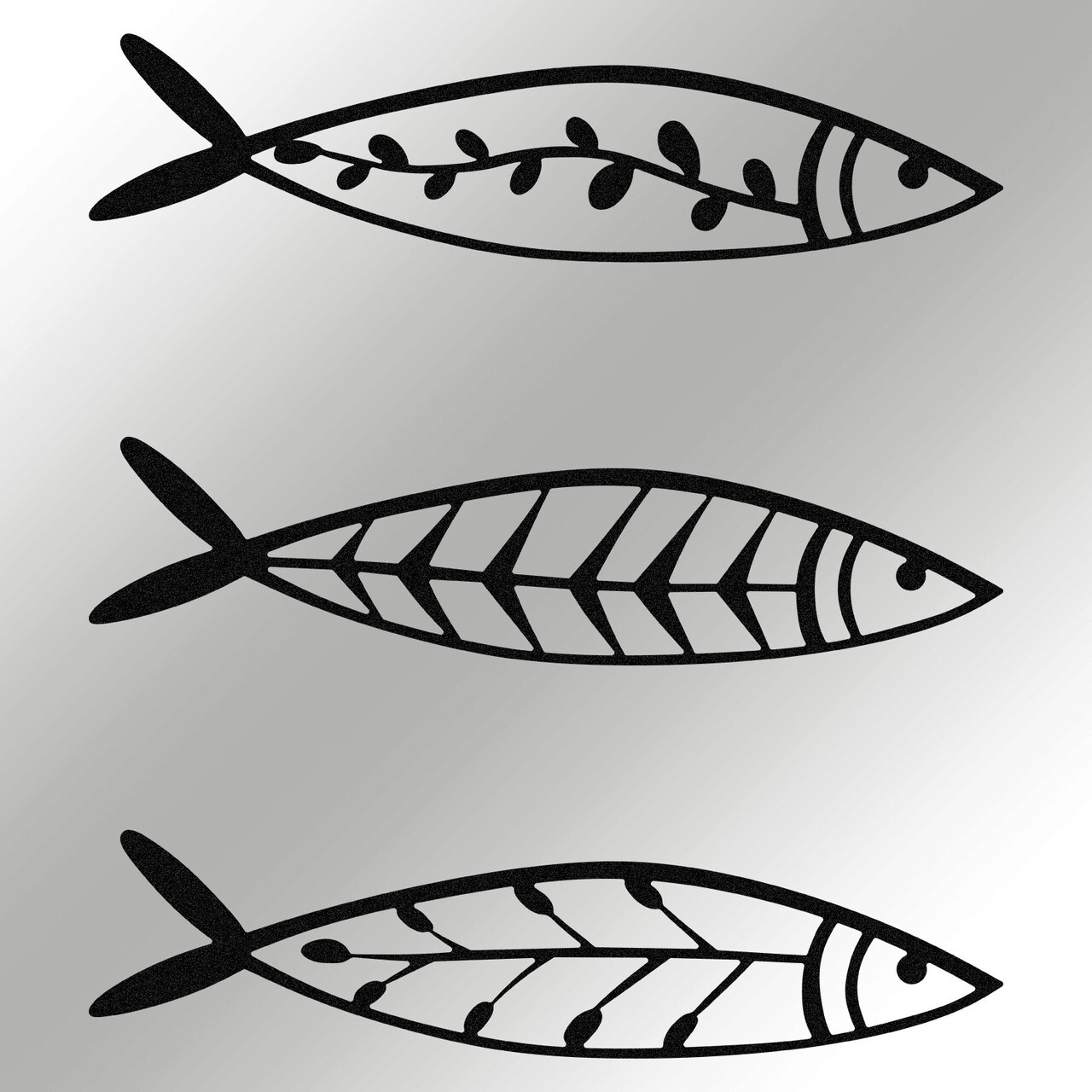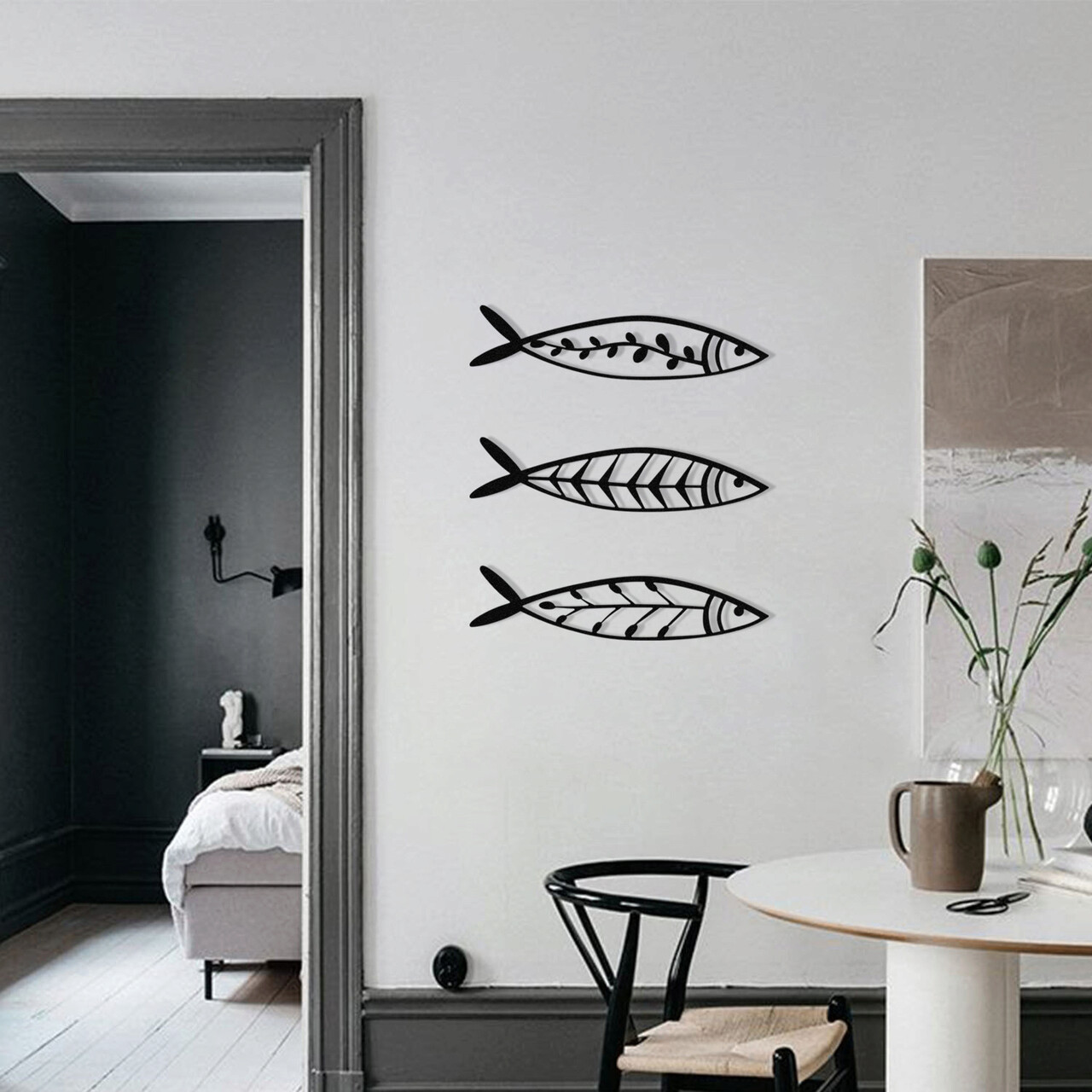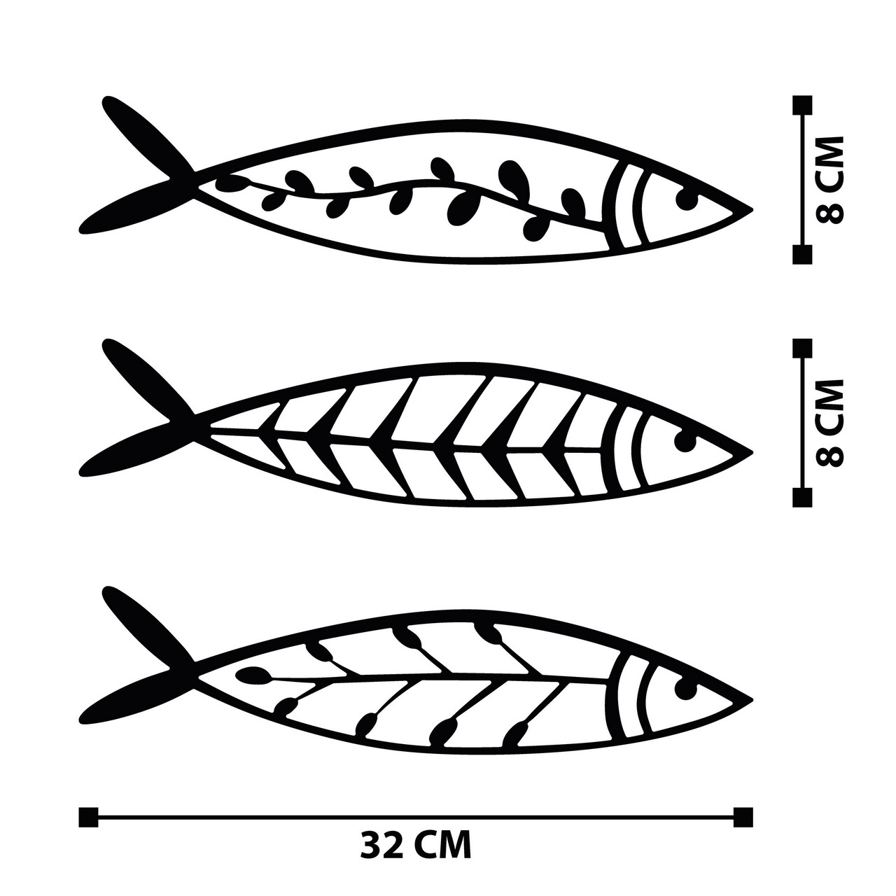 Decoratiune de perete, Hamsi, Metal, 32 x 8 cm, 3 piese, Negru