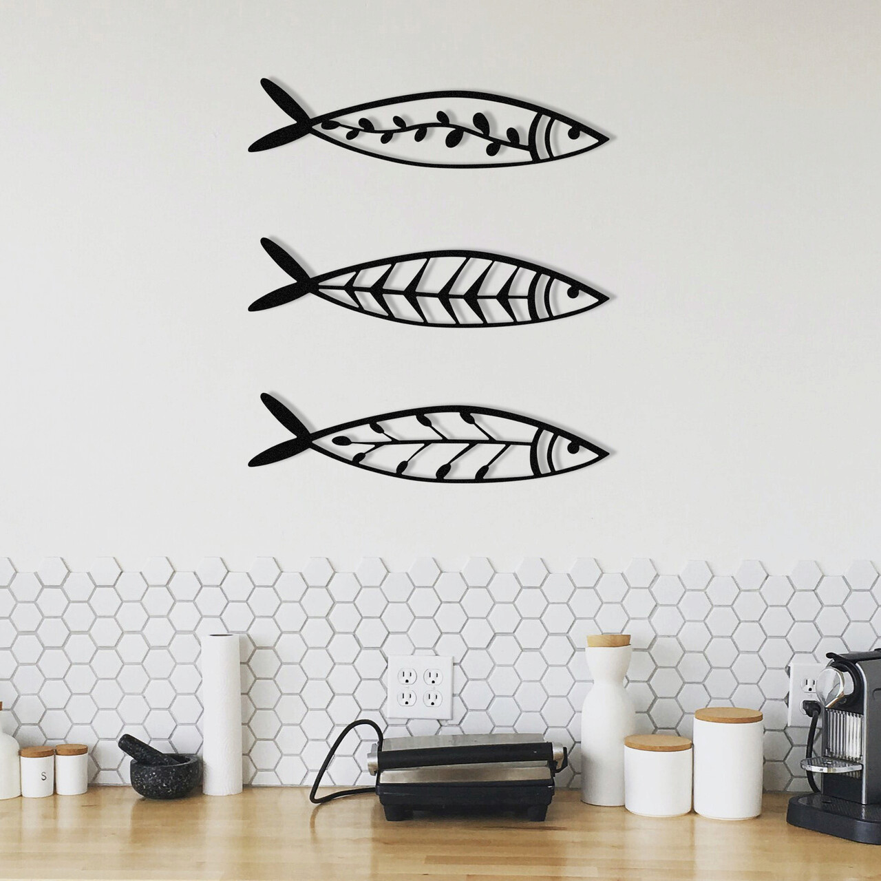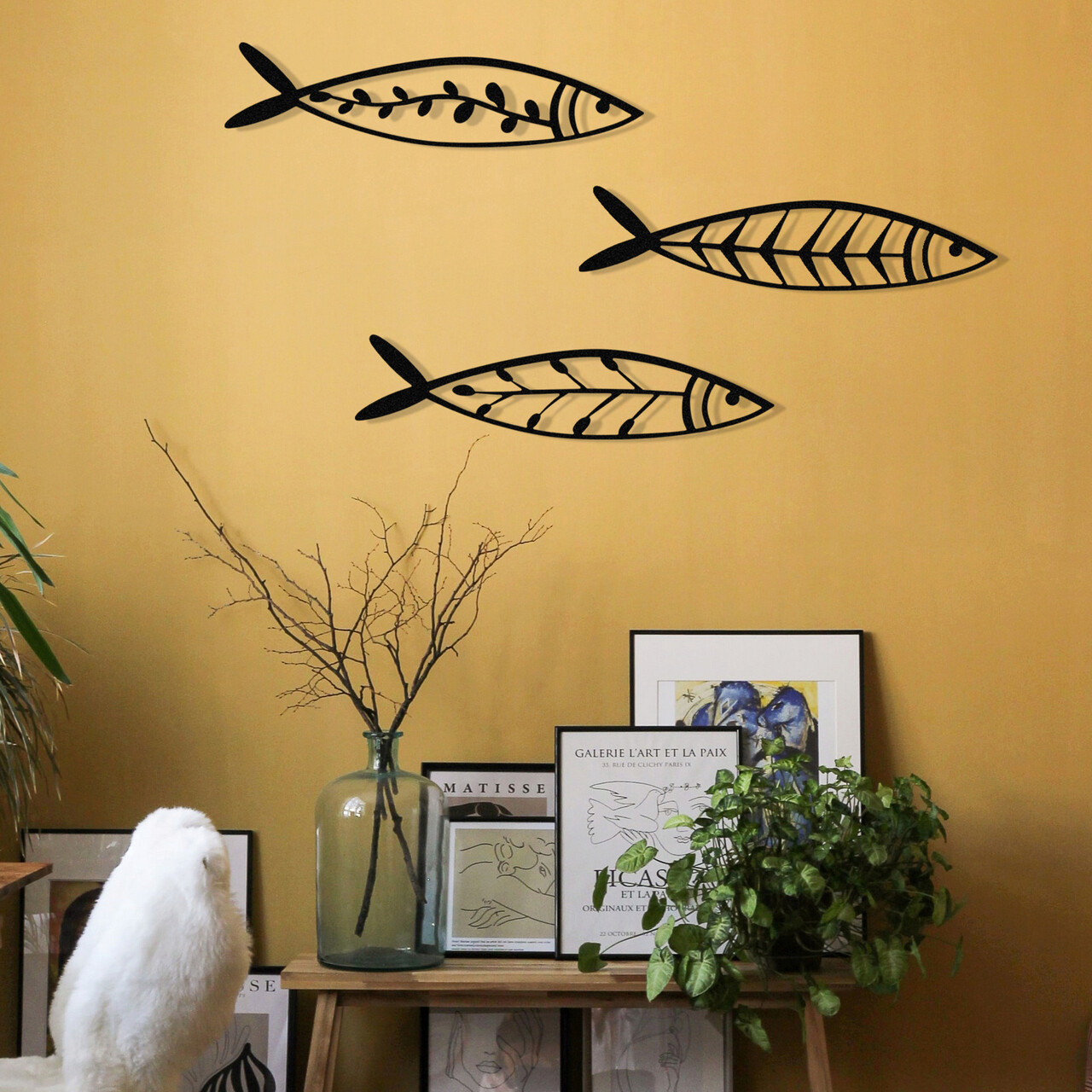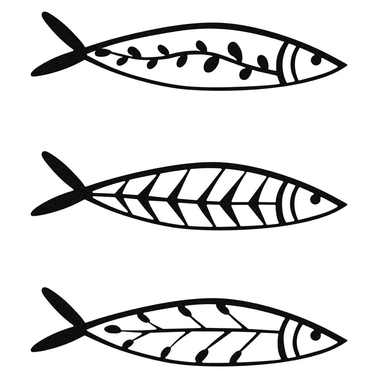 Decoratiune de perete, Hamsi, Metal, 32 x 8 cm, 3 piese, Negru