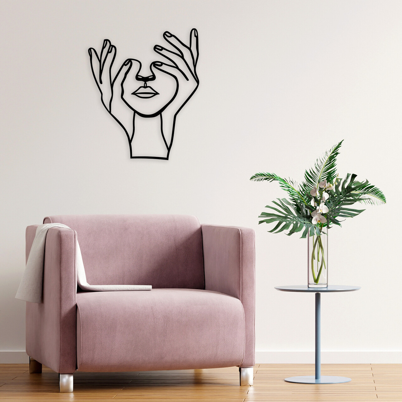 Decoratiune de perete, Hand Face, Metal, Dimensiune: 70 x 86 cm, Negru