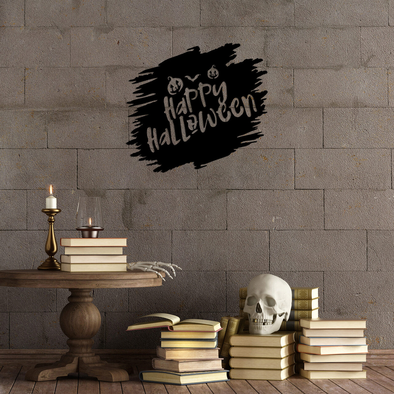 Decoratiune de perete, Happy Halloween, Metal, Dimensiune: 70 x 64 cm, Negru