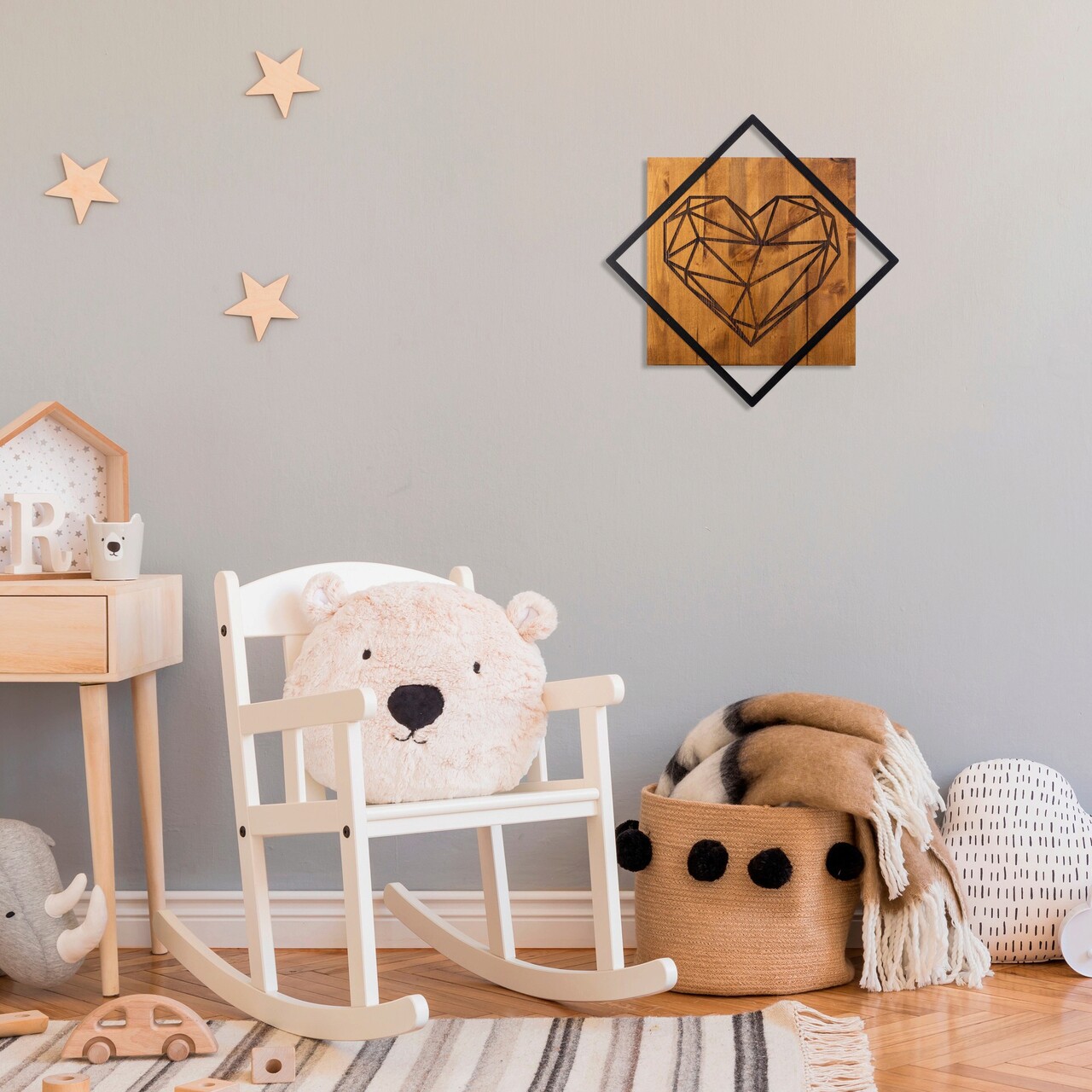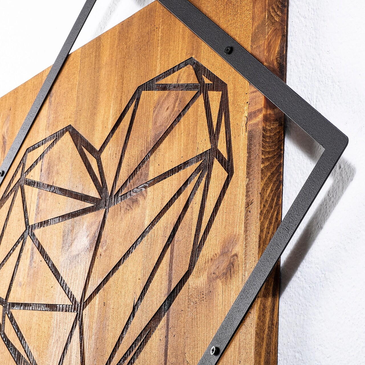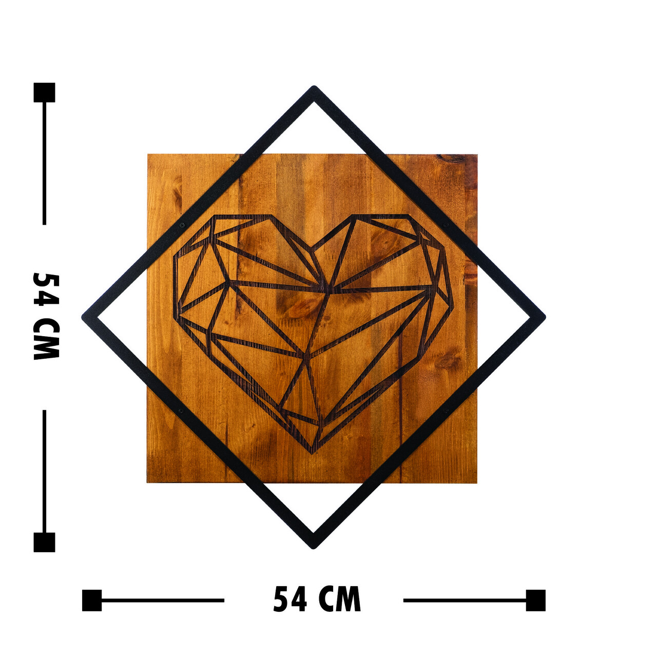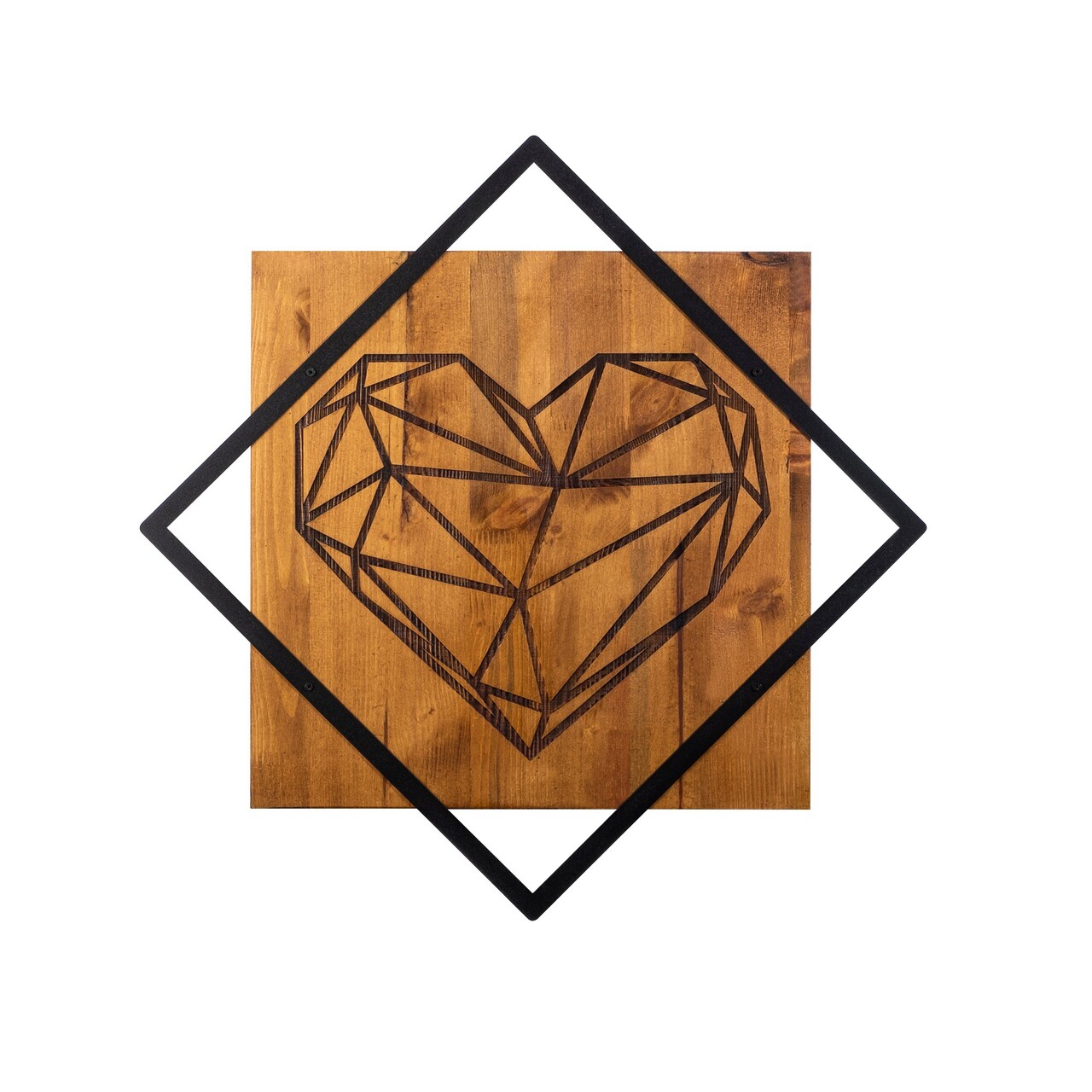 Decoratiune de perete, Heart 2, 50% lemn/50% metal, Dimensiune: 54 x 54 cm, Nuc / Negru