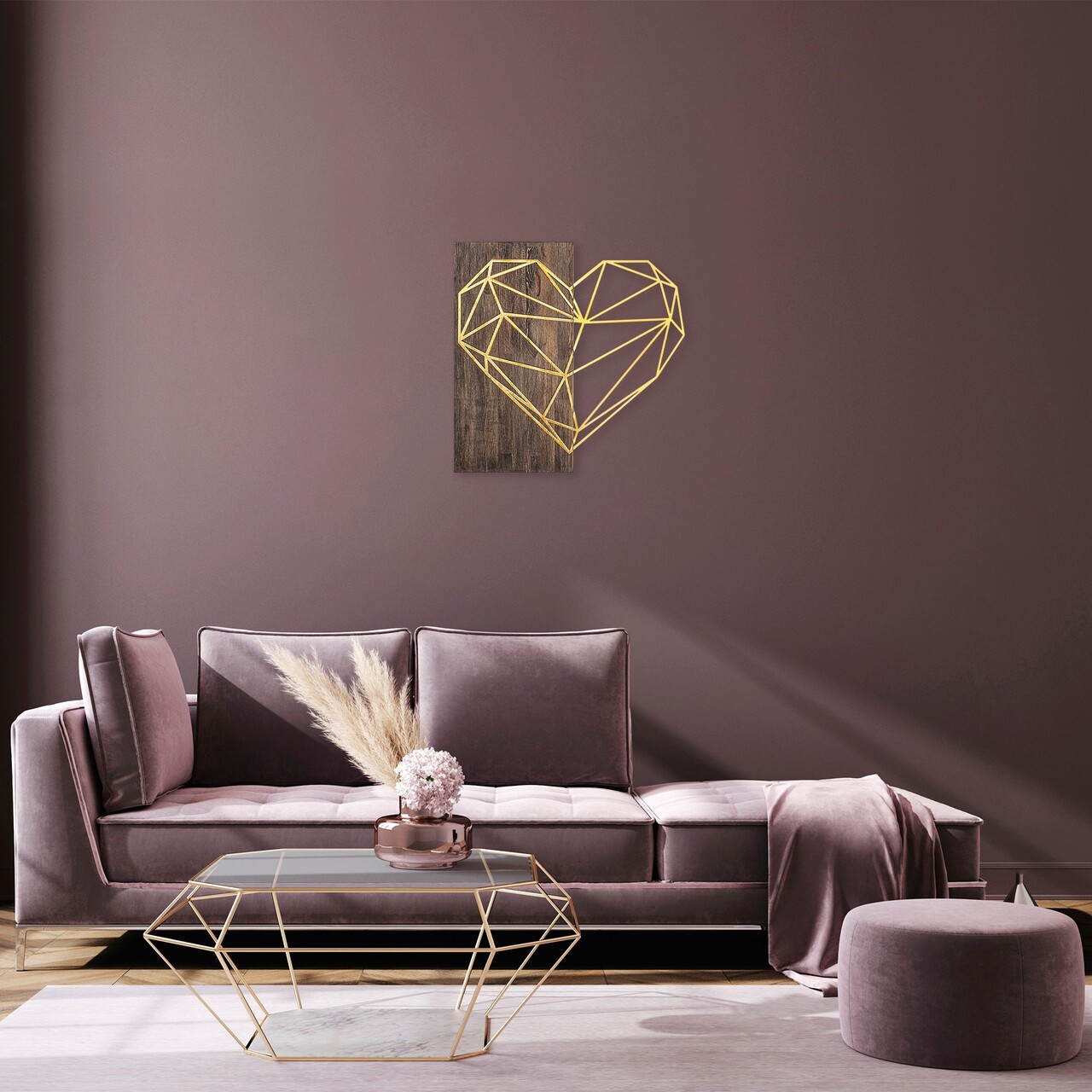 Decoratiune de perete, Heart, 50% lemn/50% metal, Dimensiune: 58 x 58 cm, Nuc / Aur