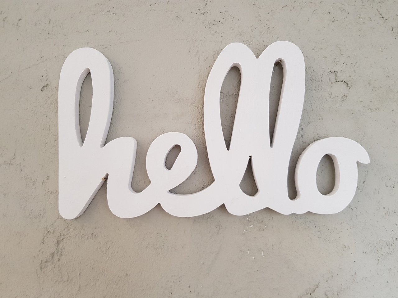 Decoratiune de perete, Hello, 40x2x20 cm, Placaj, Alb