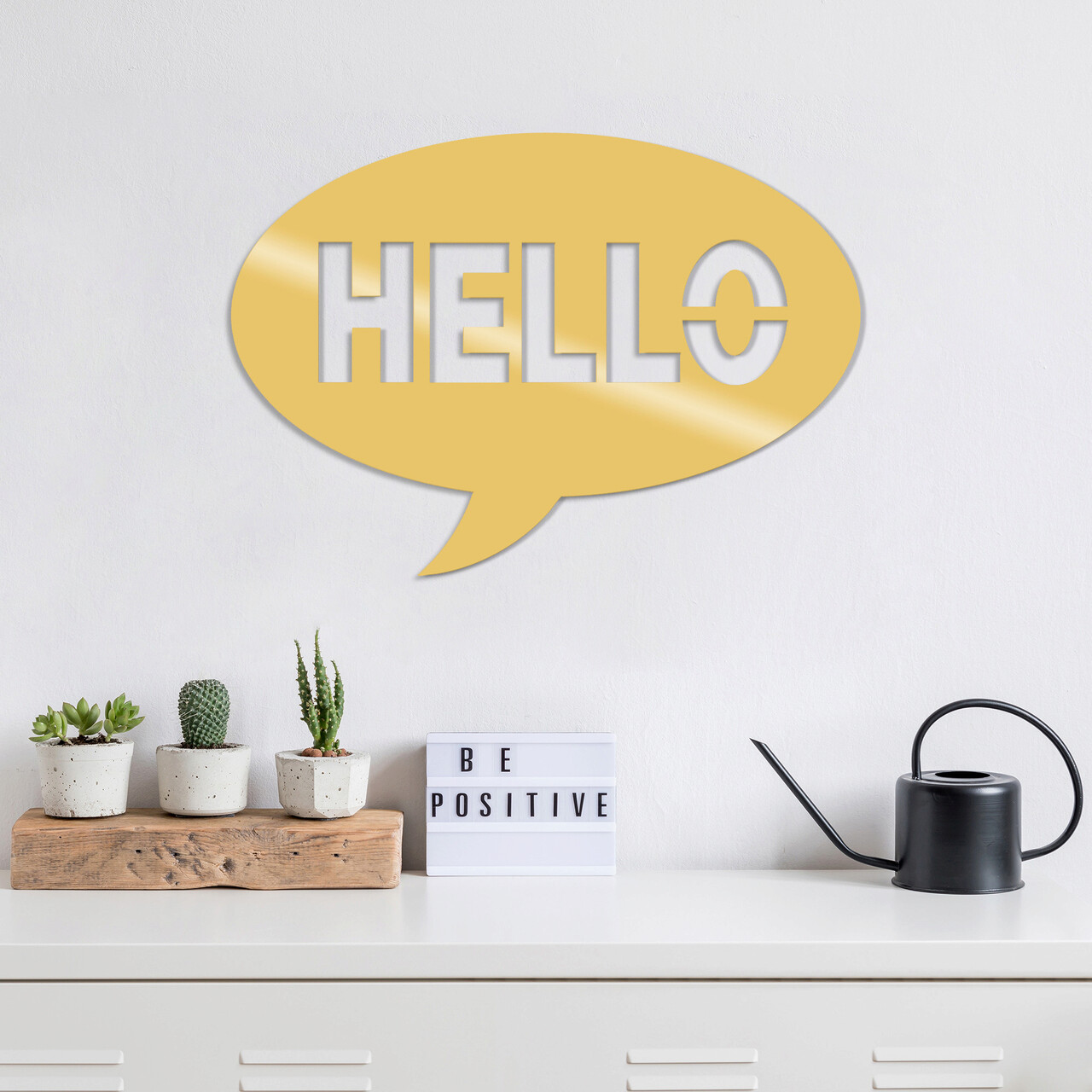 Decoratiune de perete, Hello Metal Decor, Metal, Dimensiune: 49 x 35 cm, Auriu