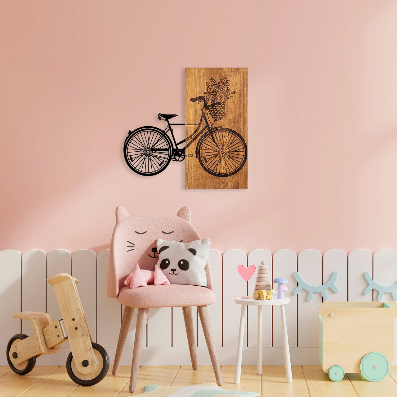 Decoratiune de perete, Historical Floral Bike, Lemn/metal, Dimensiune: 60 x 58 cm, Nuc / Negru