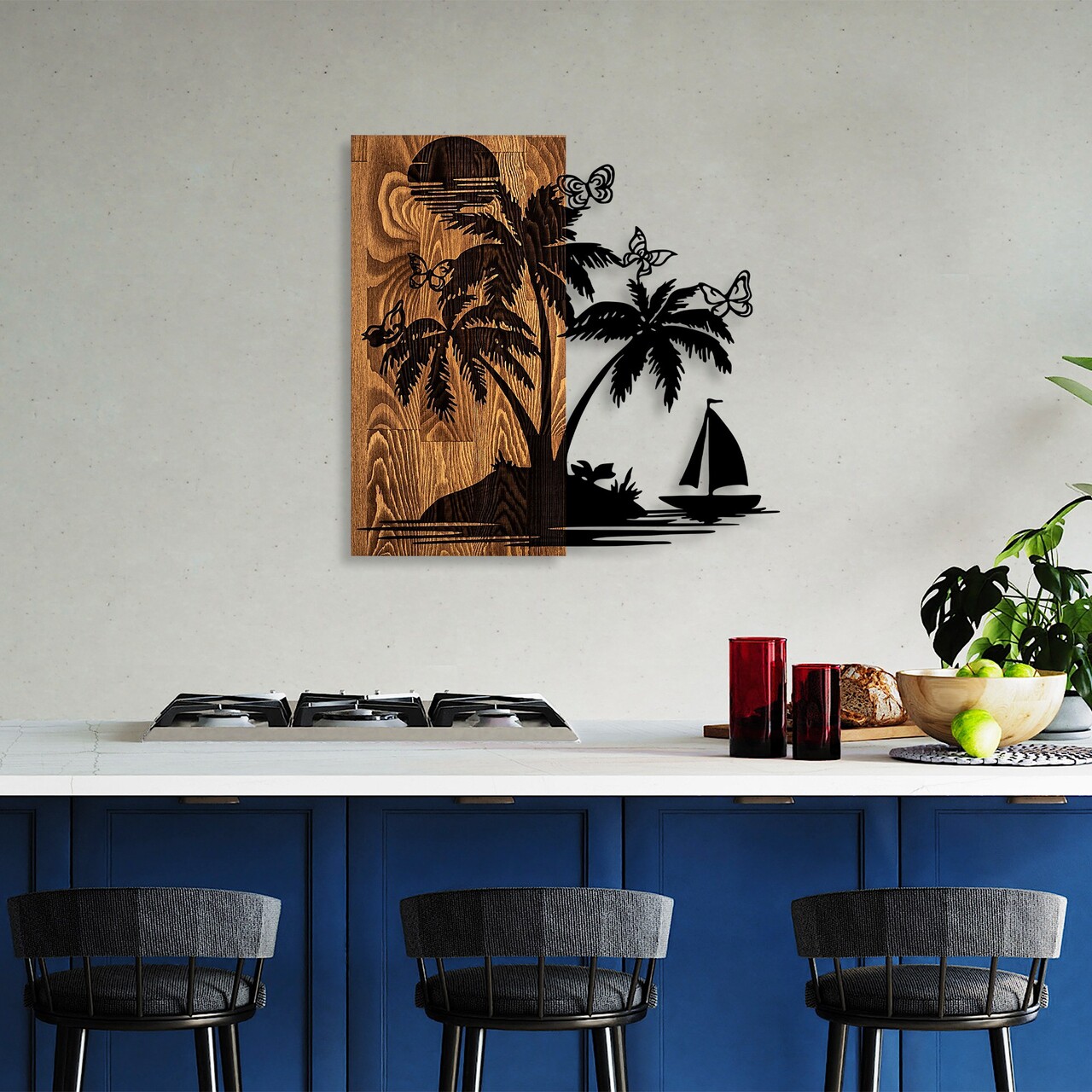 • Decoratiune de perete, Holiday İsland, Dimensiune: 57 x 58 cm, Nuc / Negru