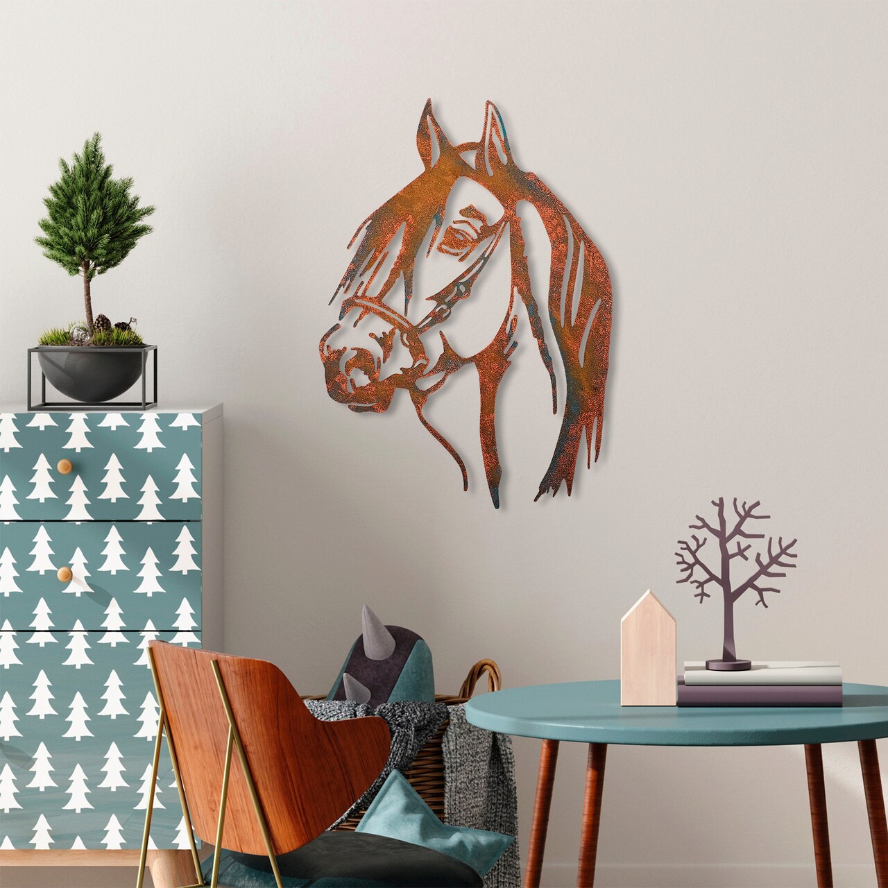 Decoratiune de perete, Horse, Metal, 38 x 53 cm, Multicolor