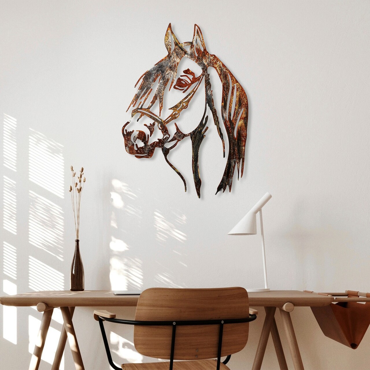 Decoratiune de perete, Horse, Metal, 38 x 53 cm, Multicolor