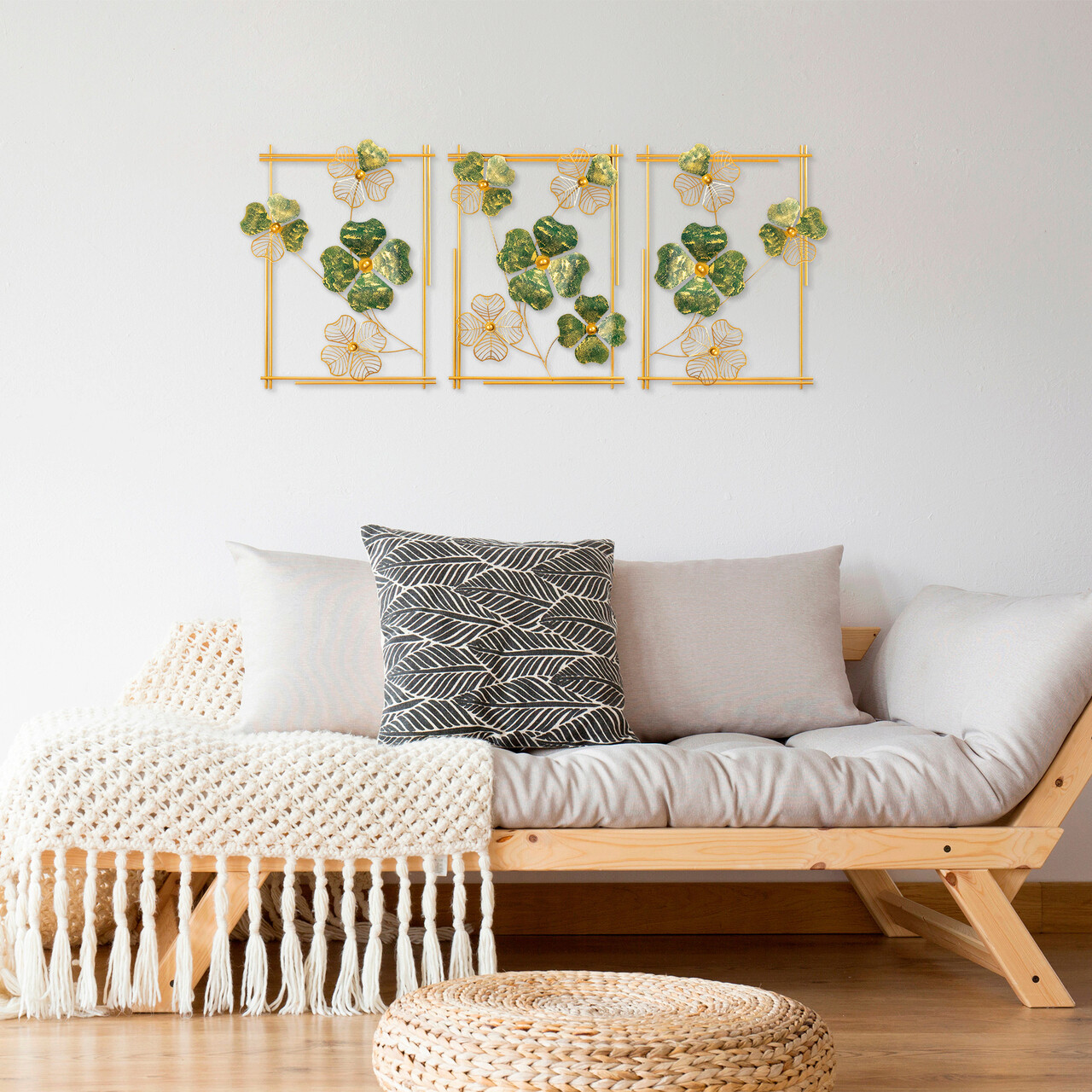 Decoratiune de perete, Huayin, Metal, 50 x 70 x 5 cm, 3 piese, Verde