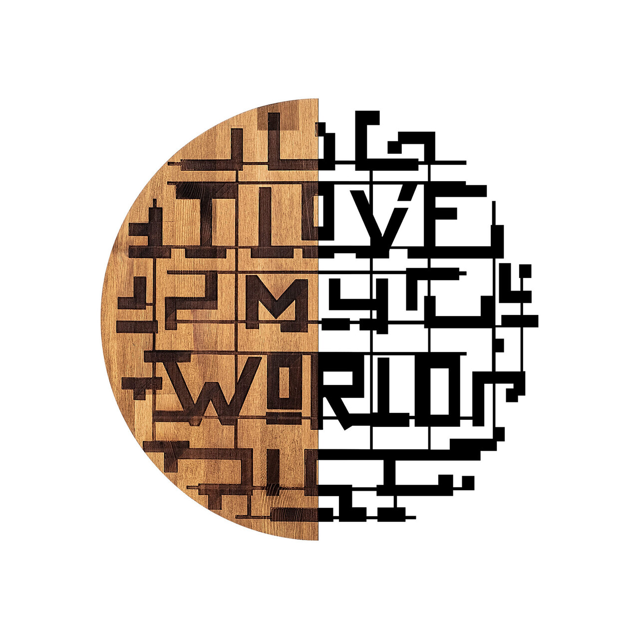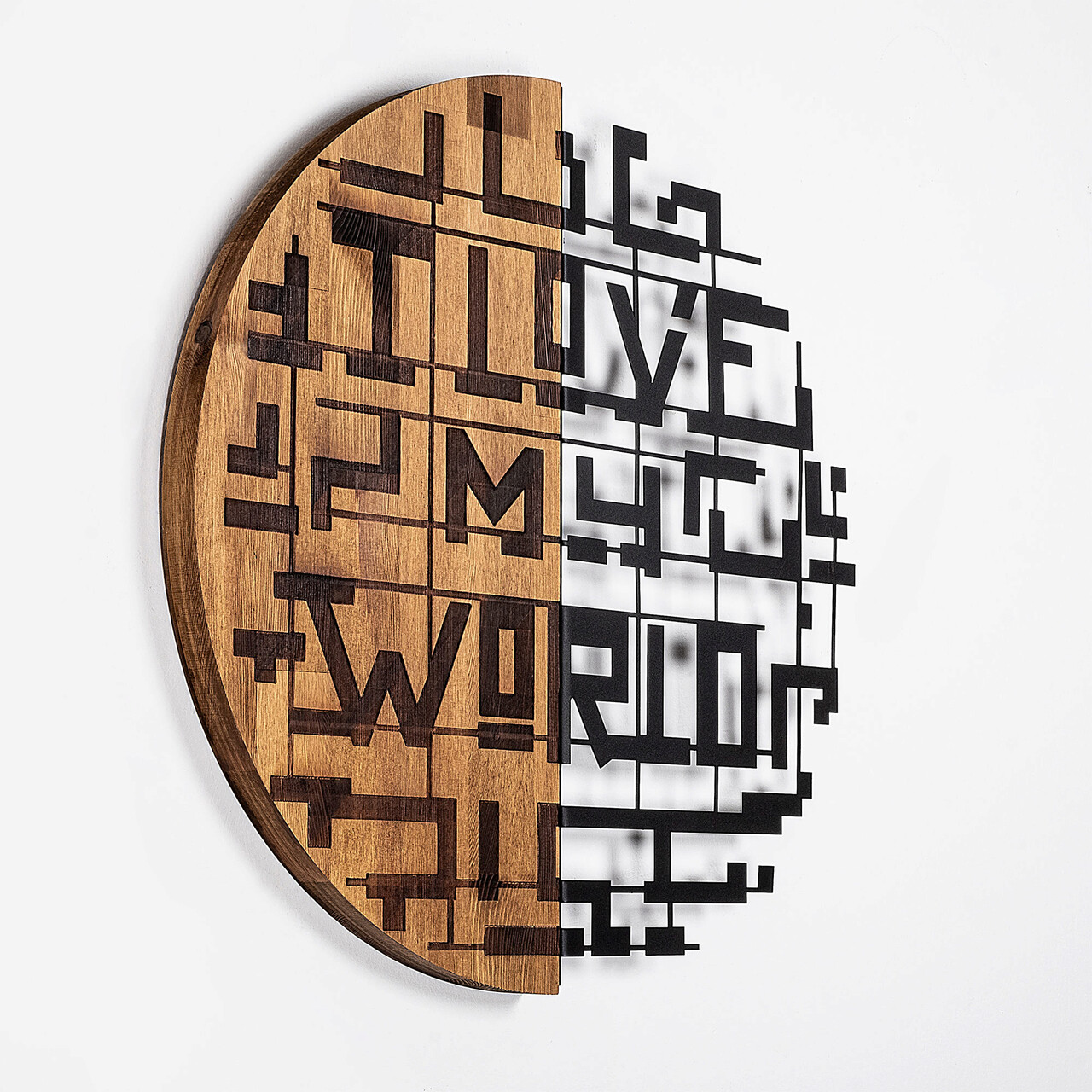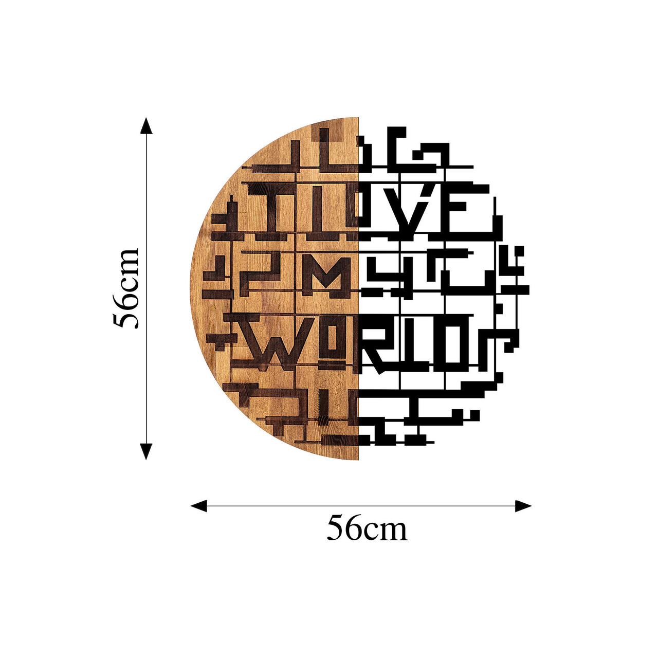 Decoratiune de perete, i Love My World, 50% lemn/50% metal, ø56 cm, Nuc negru