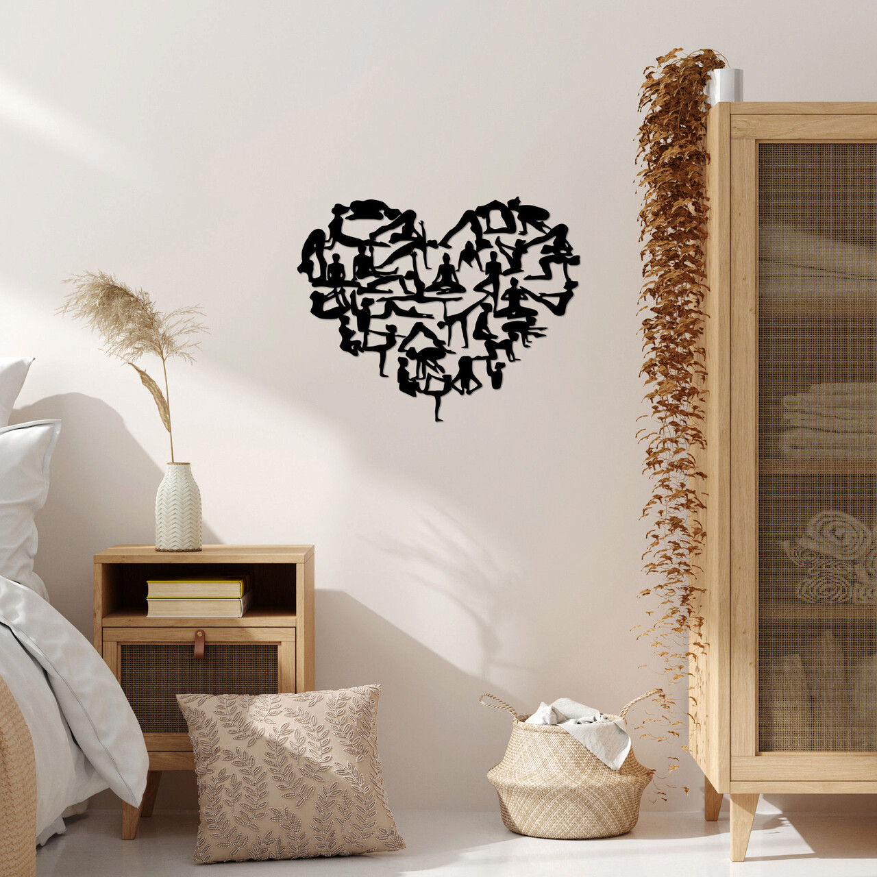 Decoratiune de perete, i Love Yoga, Metal, Dimensiune: 71 x 57 cm, Negru