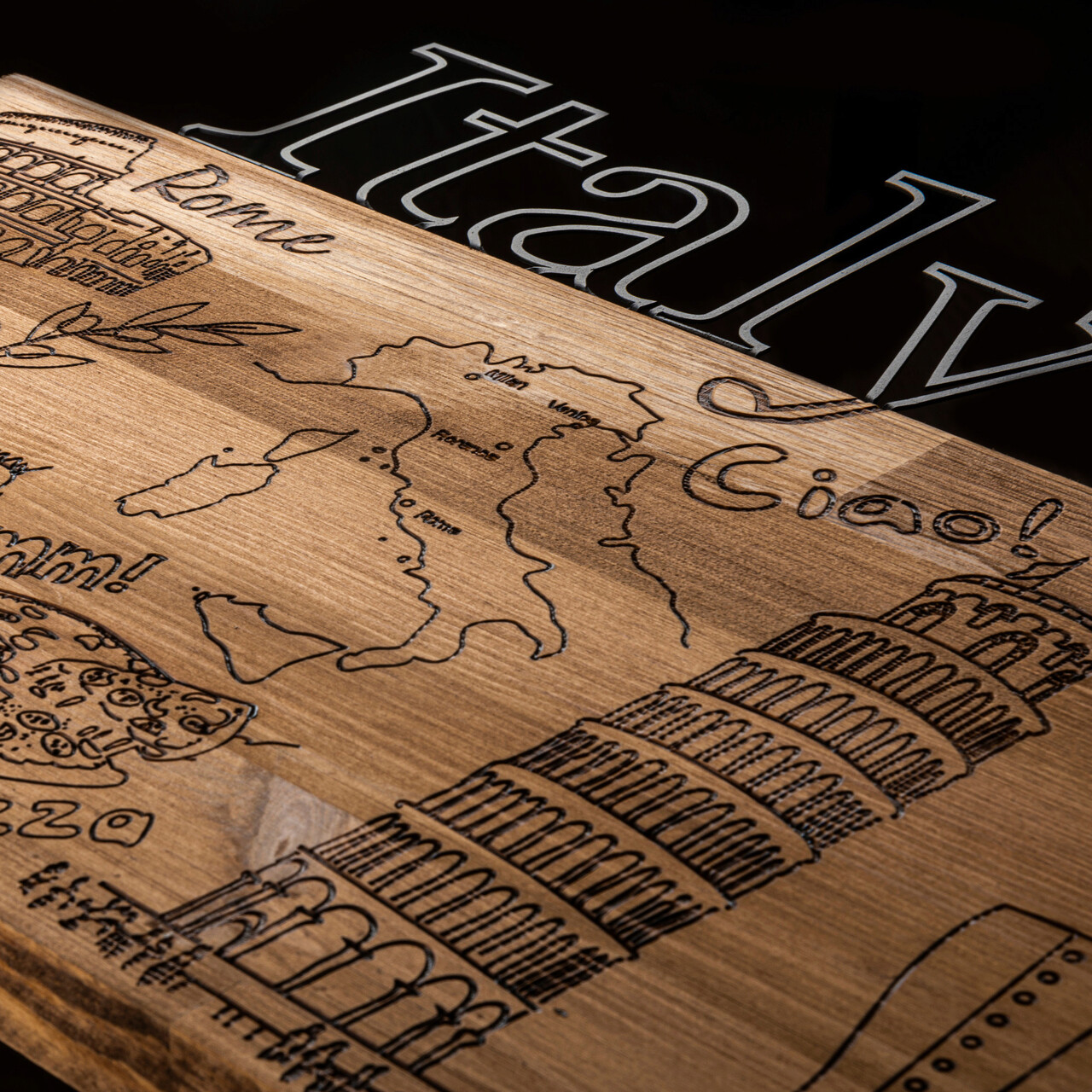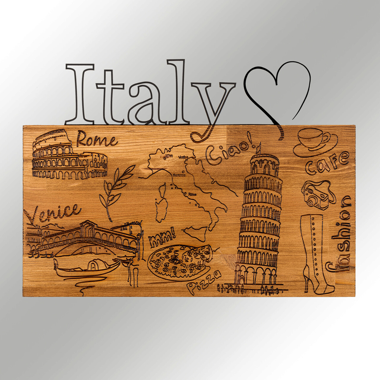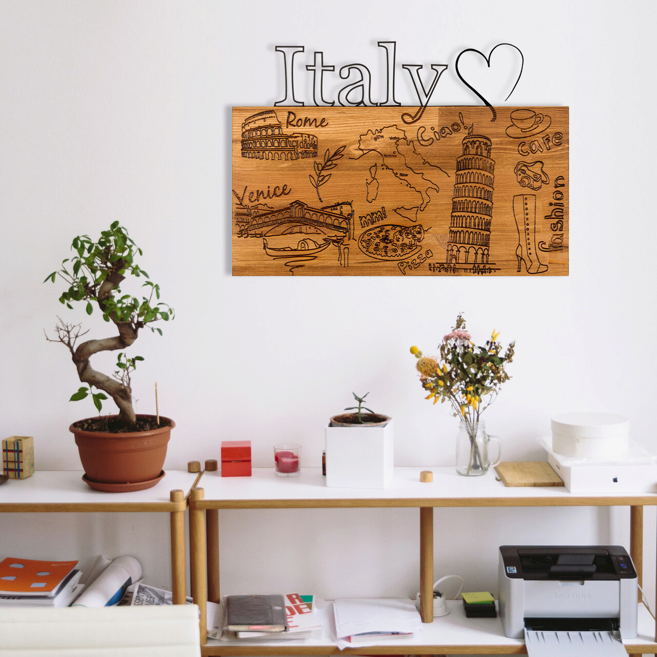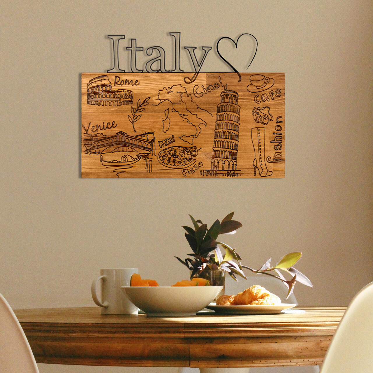 Decoratiune de perete, I Love You Italy, lemn/metal, 58 x 41 cm, negru/maro