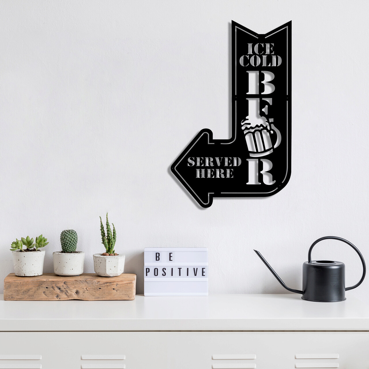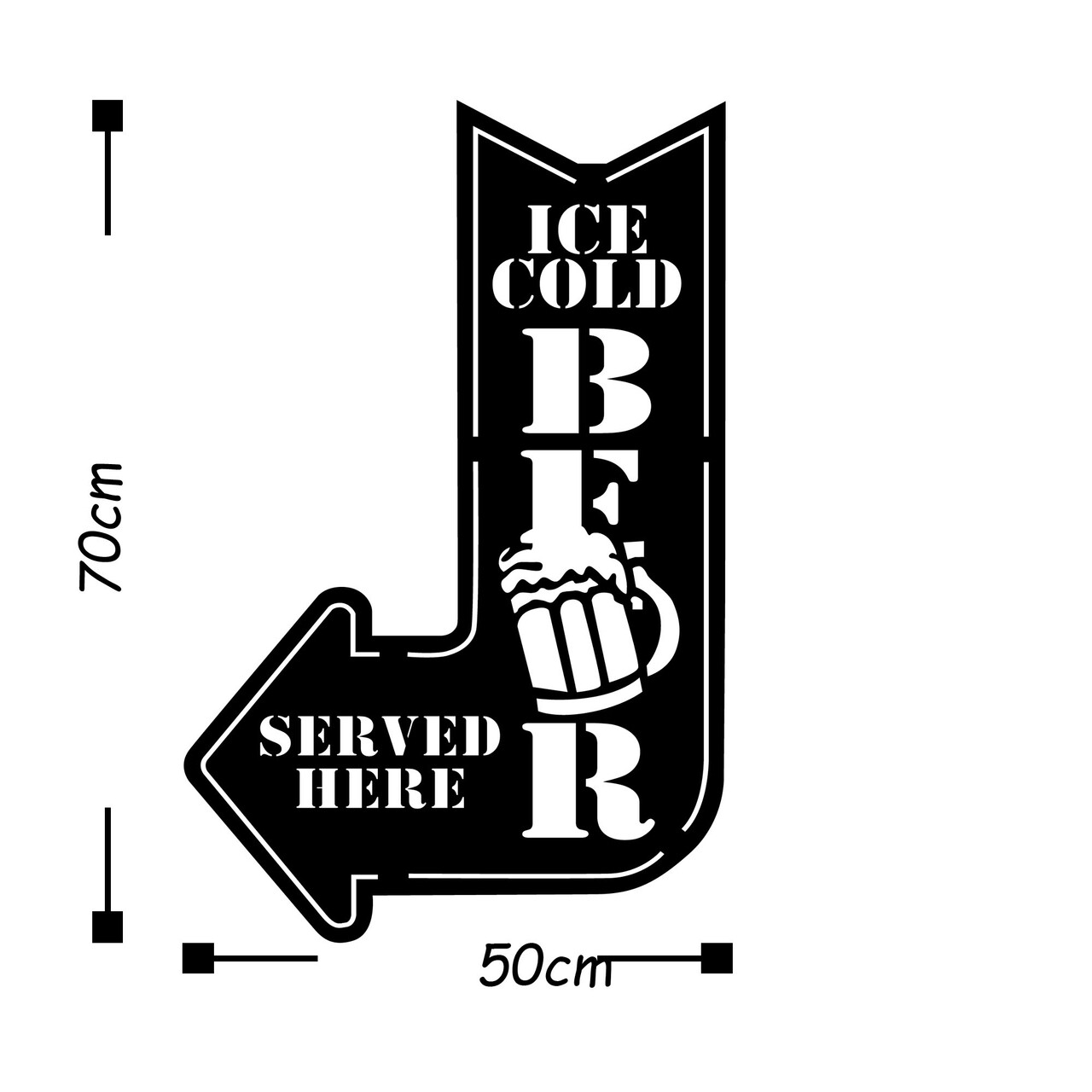 Decoratiune de perete, Ice Cold Beer, Metal, Dimensiune: 45 x 70 cm, Negru