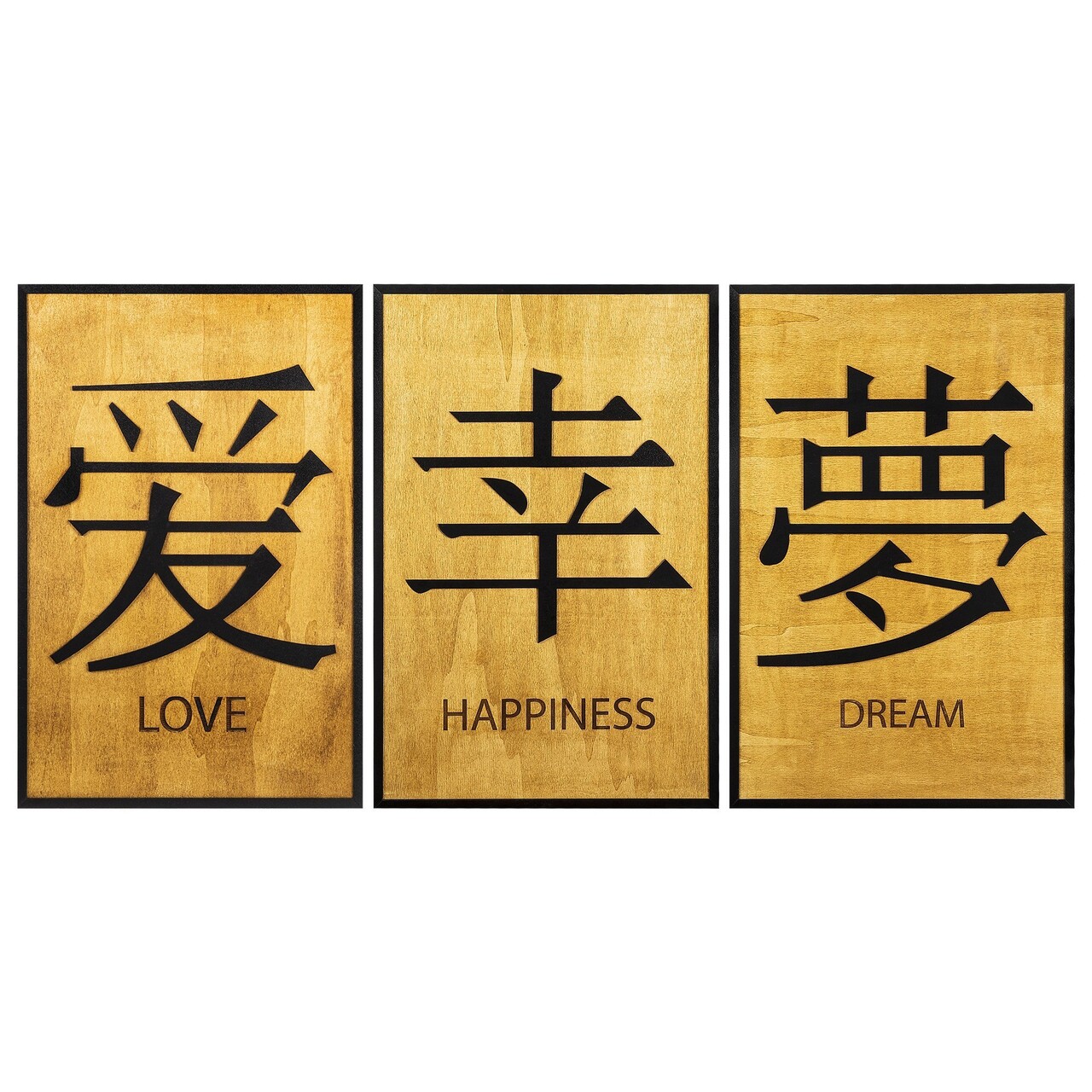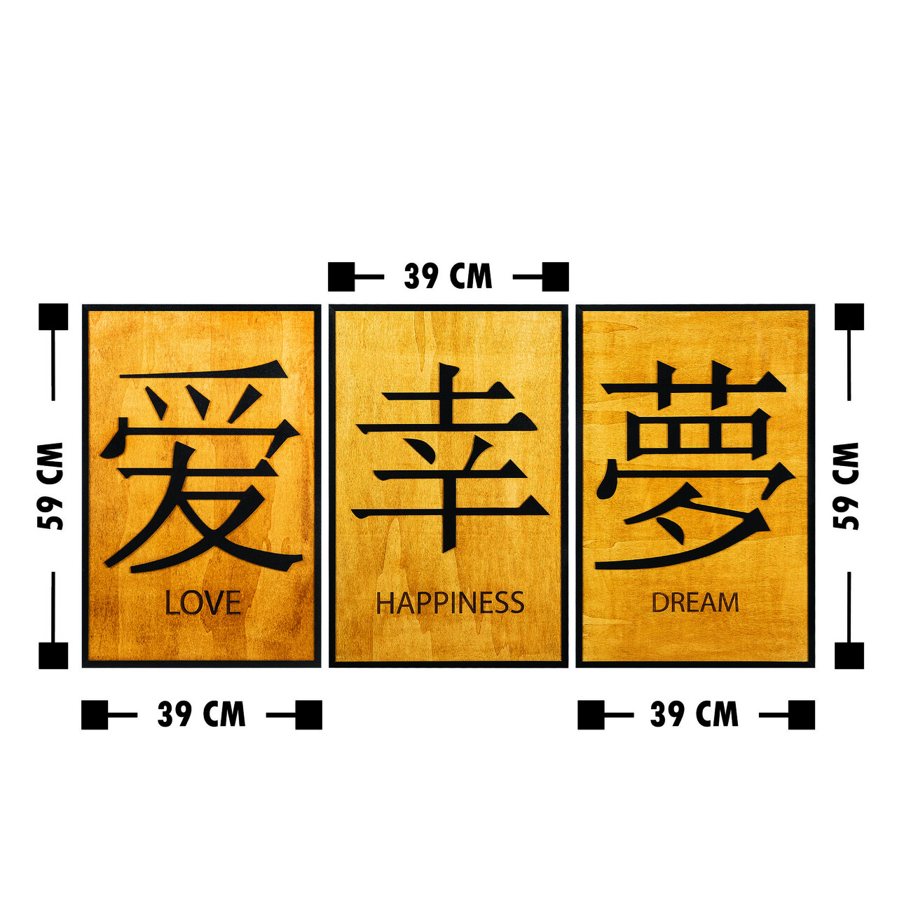 Decoratiune de perete, Japans, Placaj, 39 x 59 cm, 3 piese, Galben închis