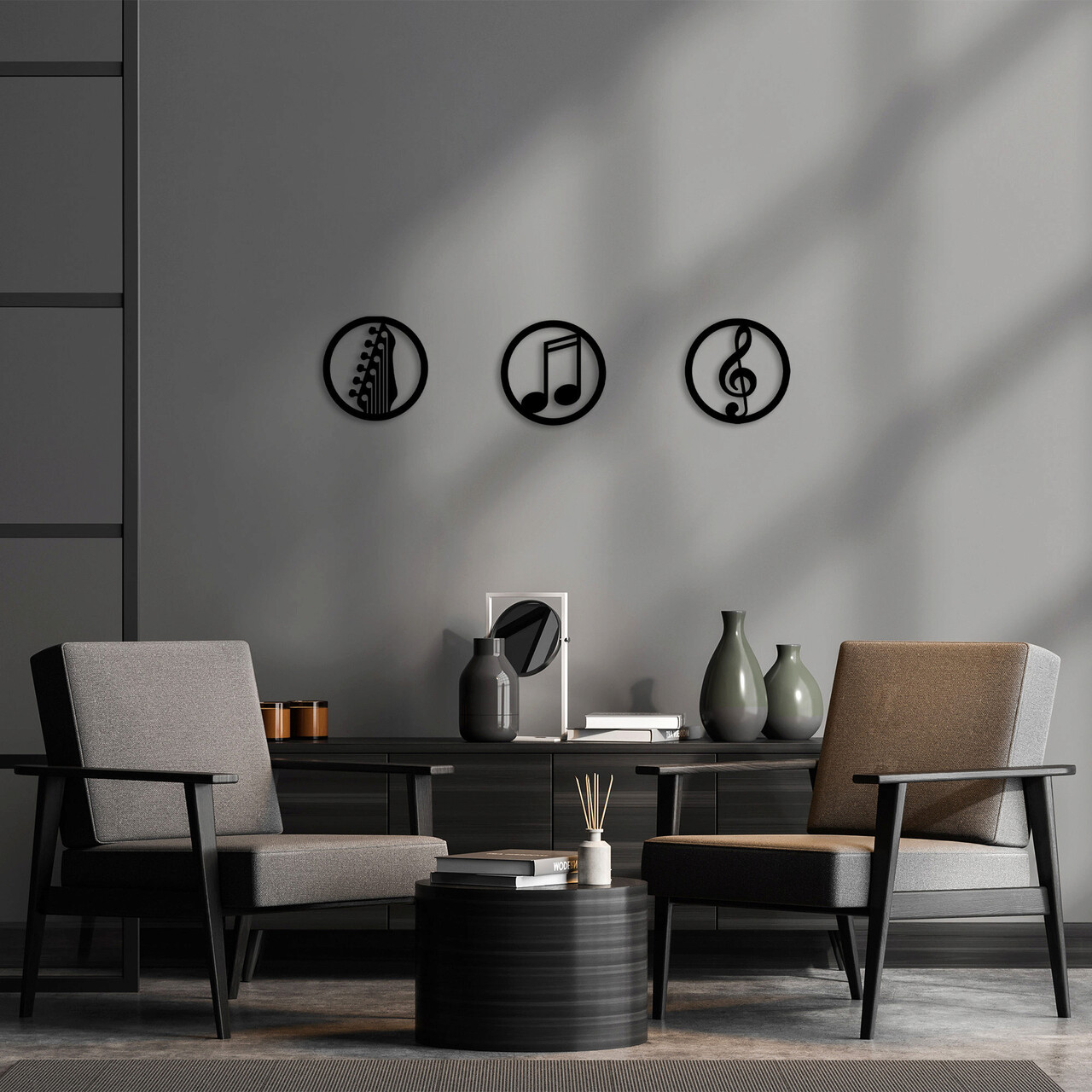 Decoratiune de perete, Just Music, Metal, ø25 cm, 3 piese, Negru
