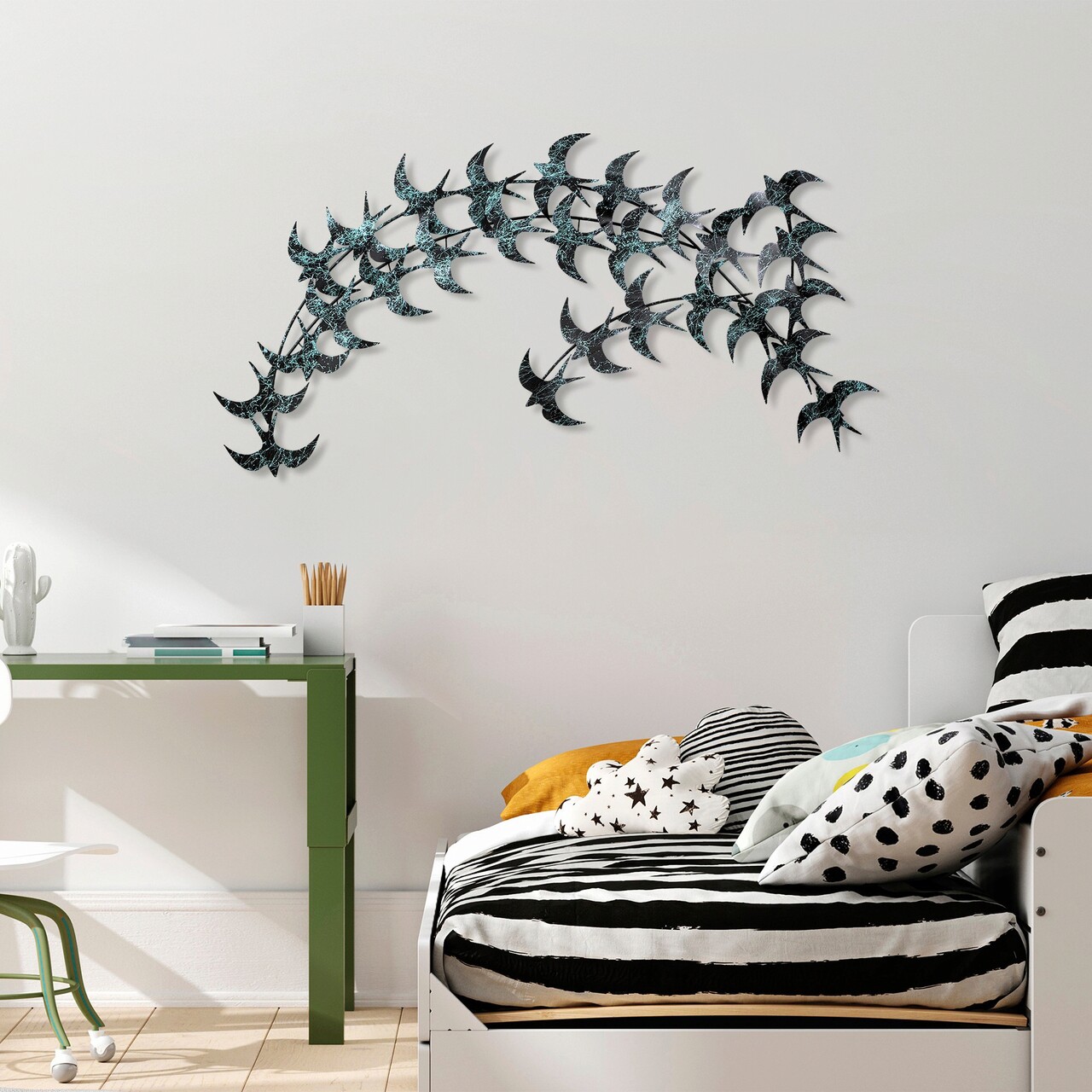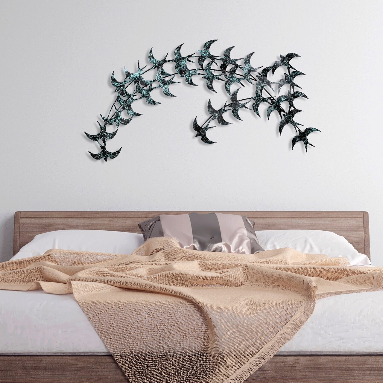 Decoratiune de perete, Kirlangic, Metal, Dimensiune: 136 x 75 cm, Albastru/Negru