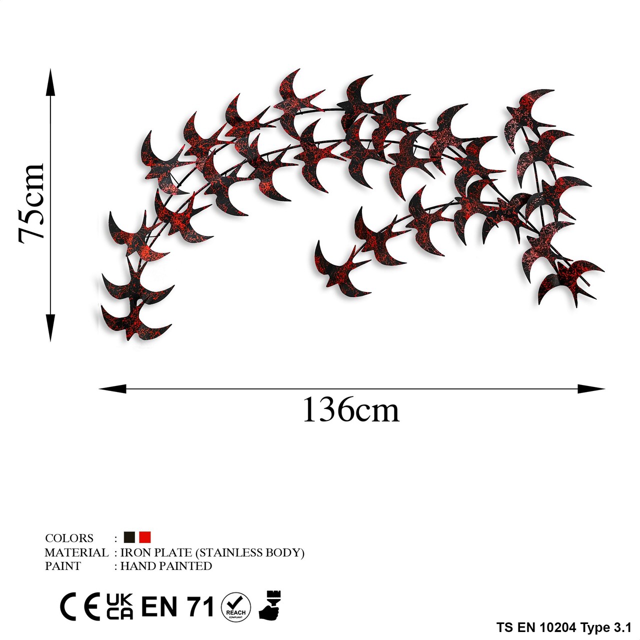 Decoratiune de perete, Kirlangic, Metal, Dimensiune: 136 x 75 cm, Roșu/Negru