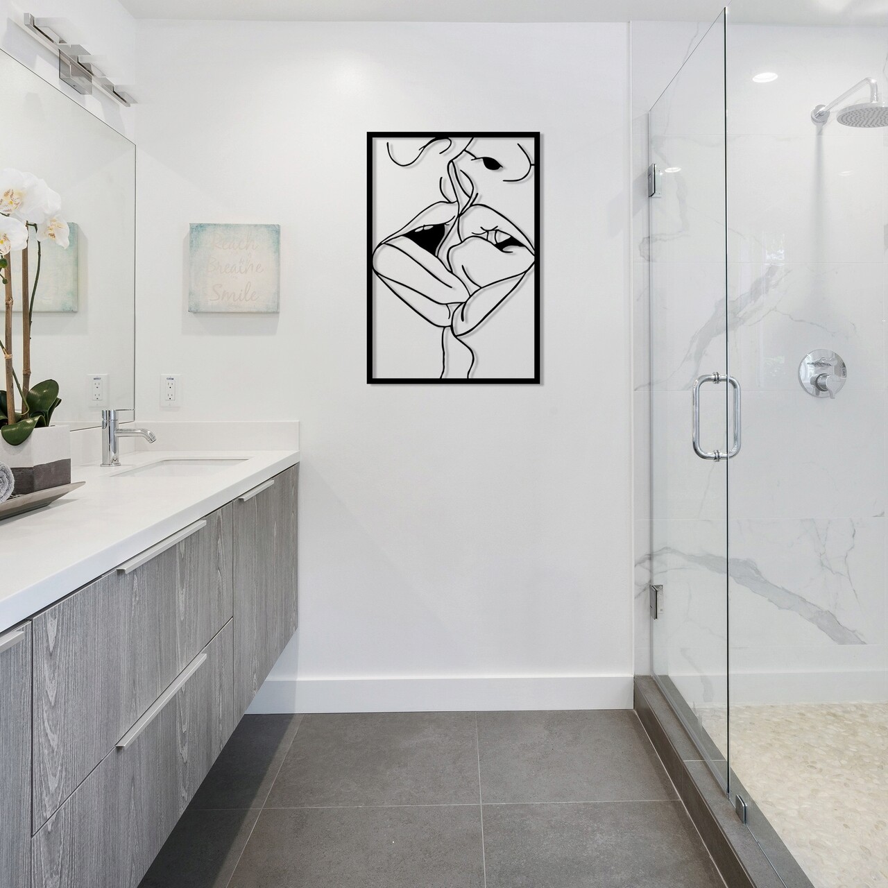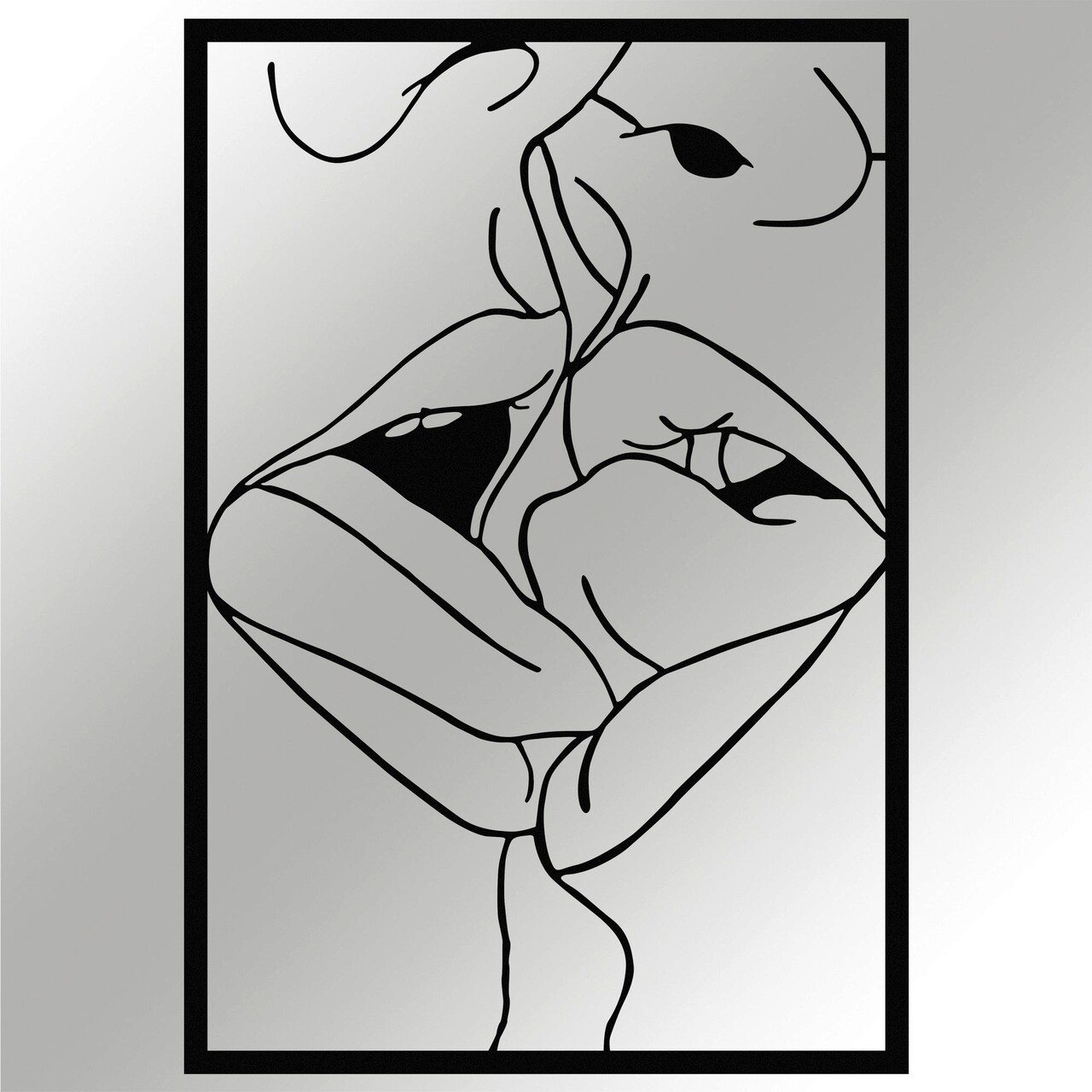 Decoratiune de perete, Kiss Me 2, metal, 34.5 x 50 cm, negru