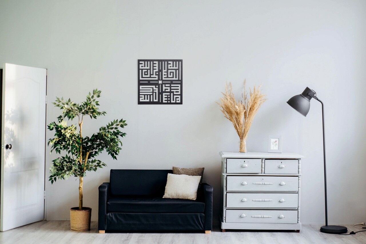 Decoratiune de perete, Kufi Tesbihat, Metal, Dimensiune: 50 x 50 cm, Negru