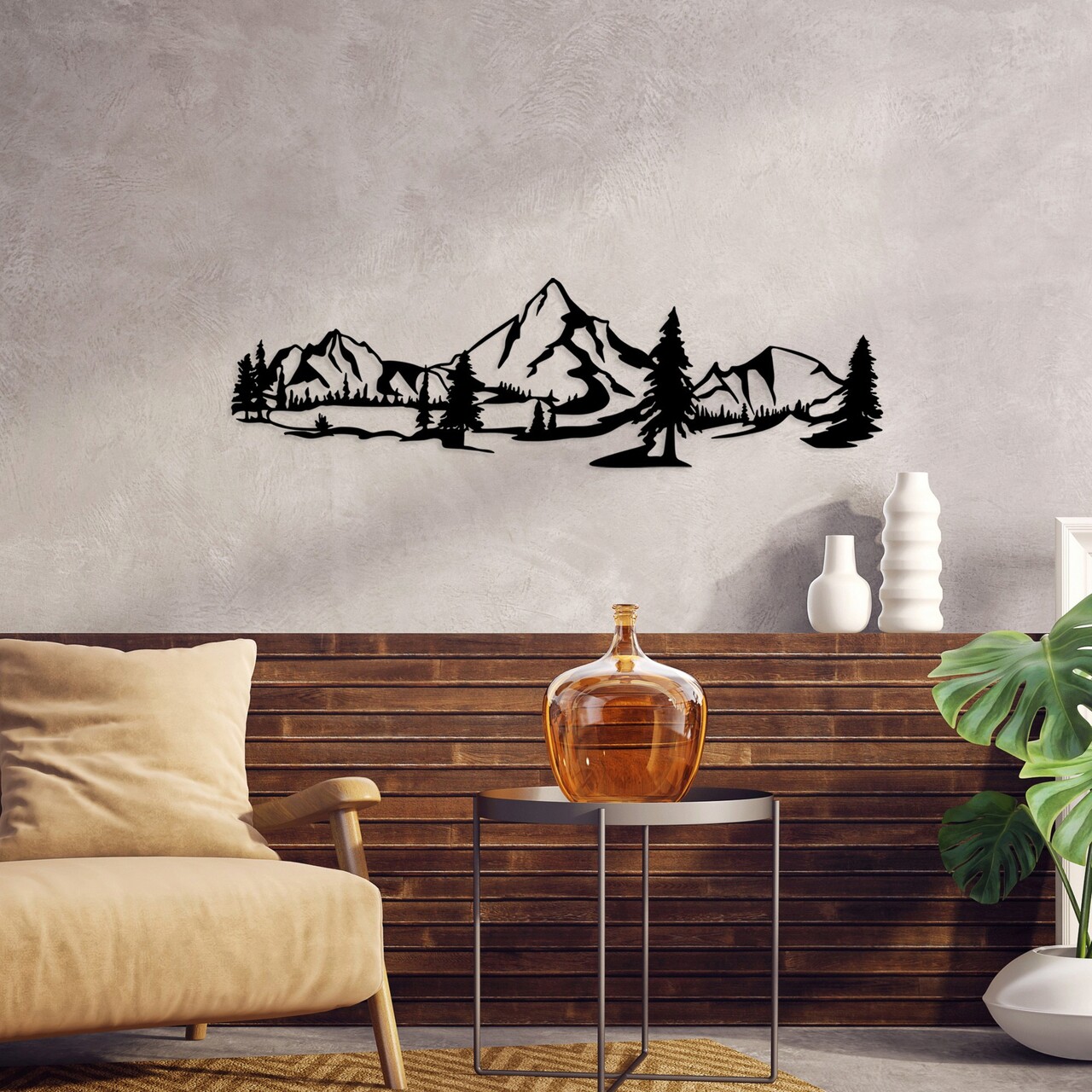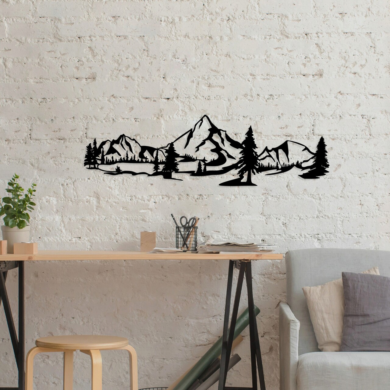 Decoratiune de perete, Landscape 4, Metal, 70 x 20 cm, Negru