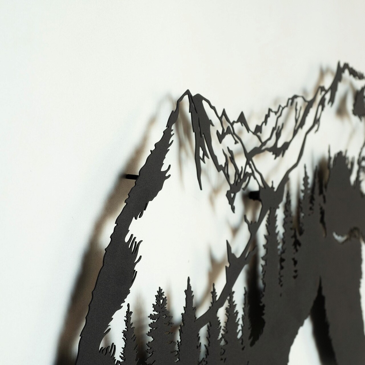 Decoratiune de perete, Landscape Bear Metal Wall Art, Dimensiuni: 41 x 71 cm, Negru