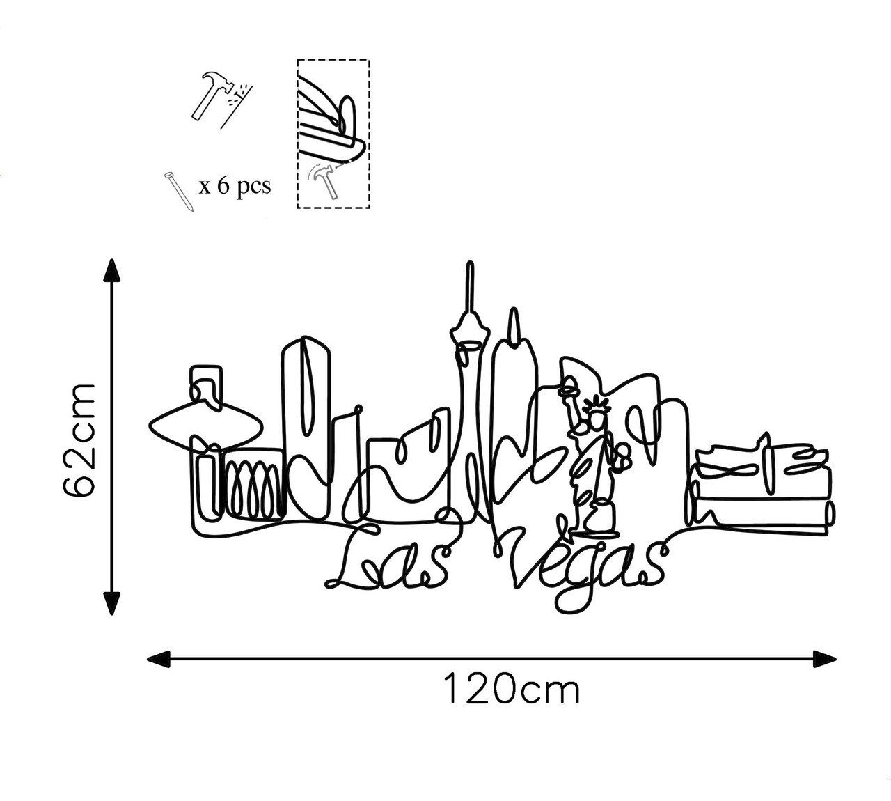 Decoratiune de perete, Las Vegas, Metal, Grosime: 2 mm, Negru