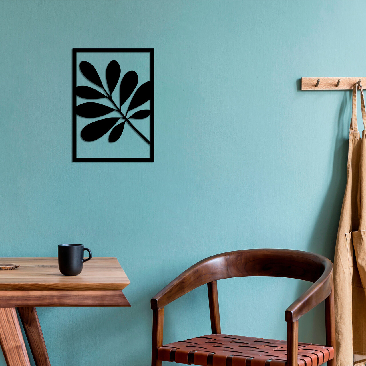 Decoratiune de perete, Leaf 2, Metal, 30 x 42 cm, Negru