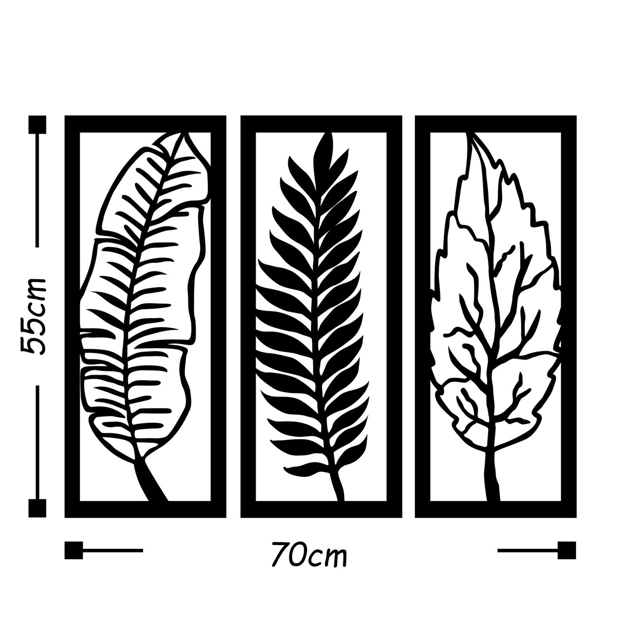 Decoratiune de perete, Leaf, Metal, Dimensiune: 70 x 55 cm, Negru