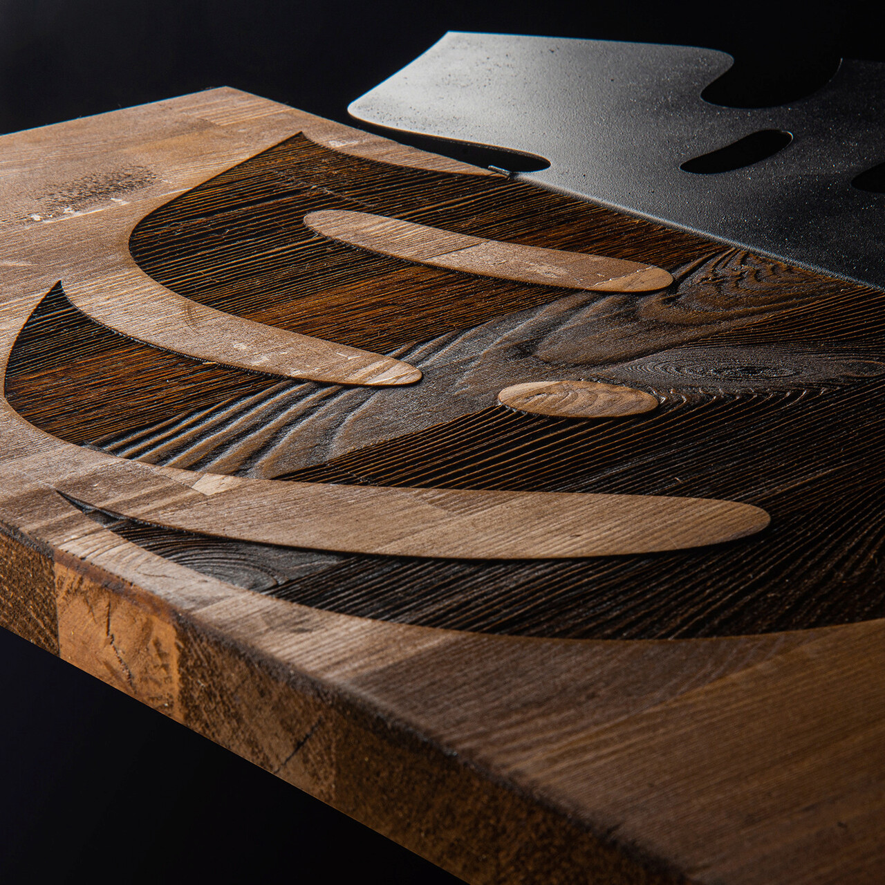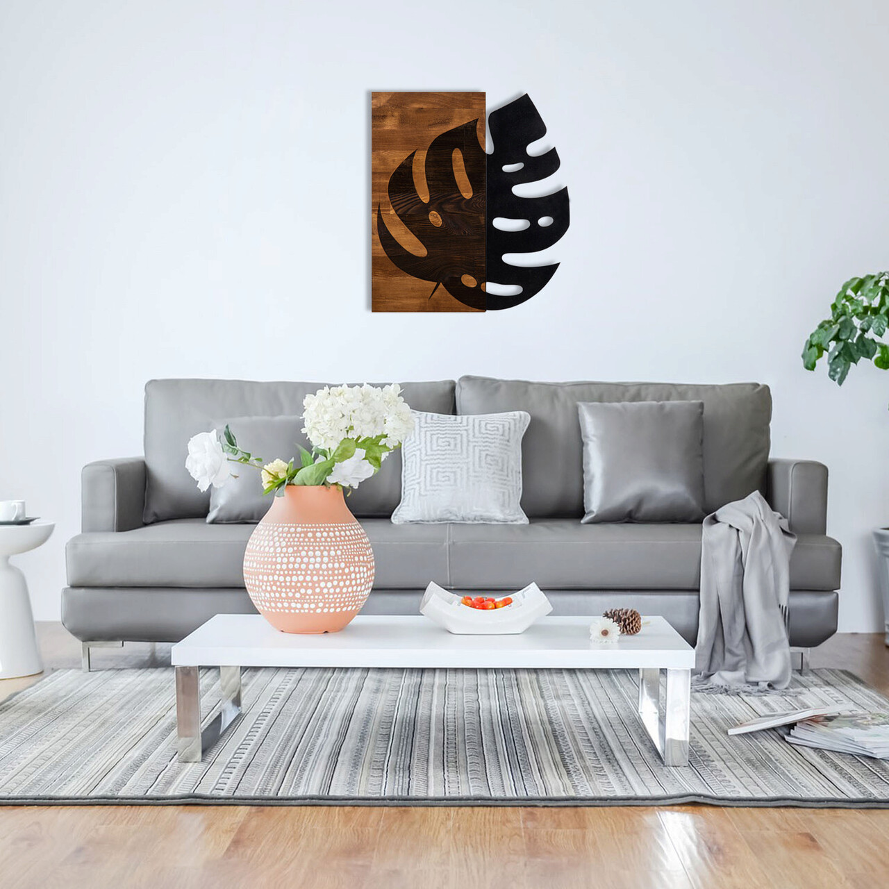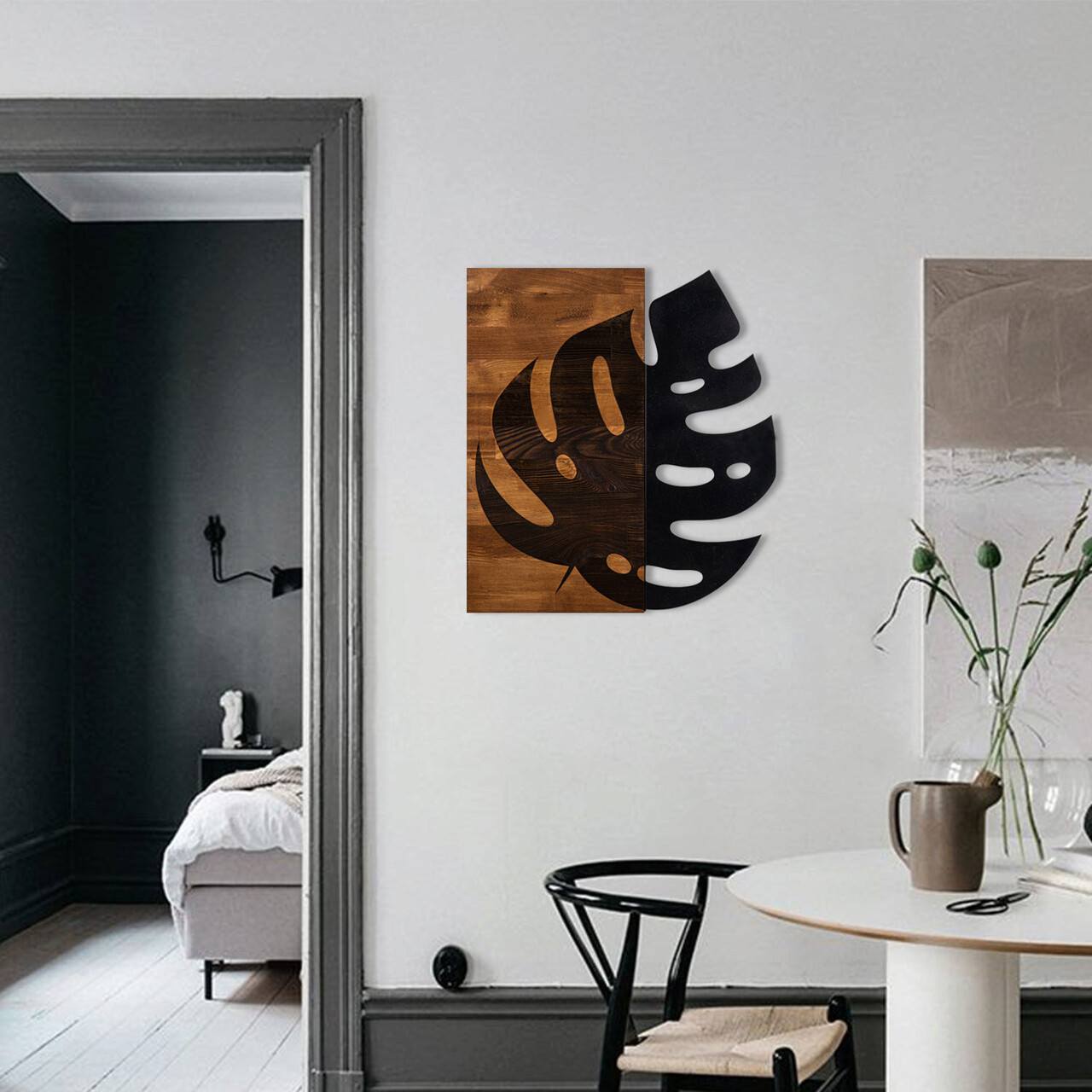 Decoratiune de perete, Leaf2 Metal Decor, lemn/metal, 52 x 58 cm, negru/maro