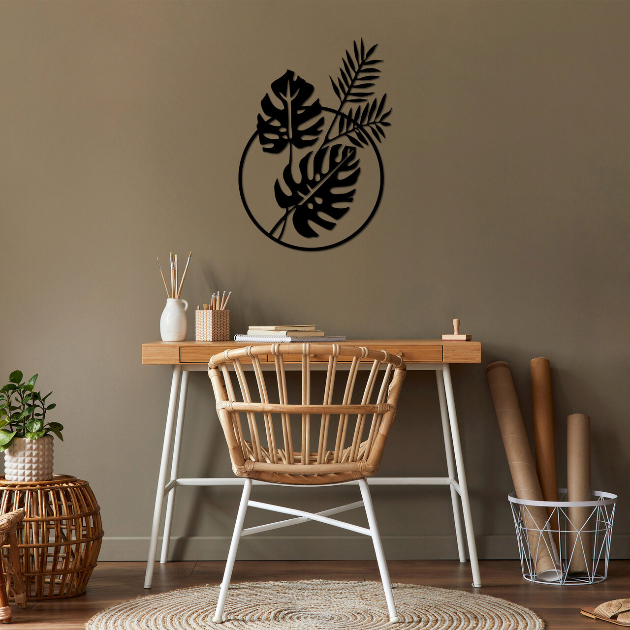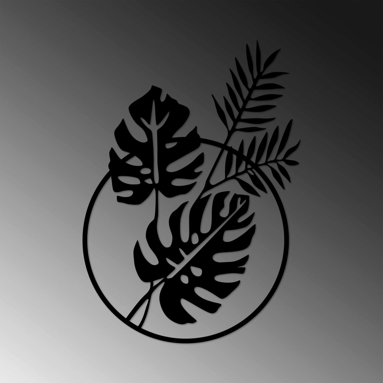 Decoratiune de perete, Leaves, Metal, 48 x 67 cm, Negru