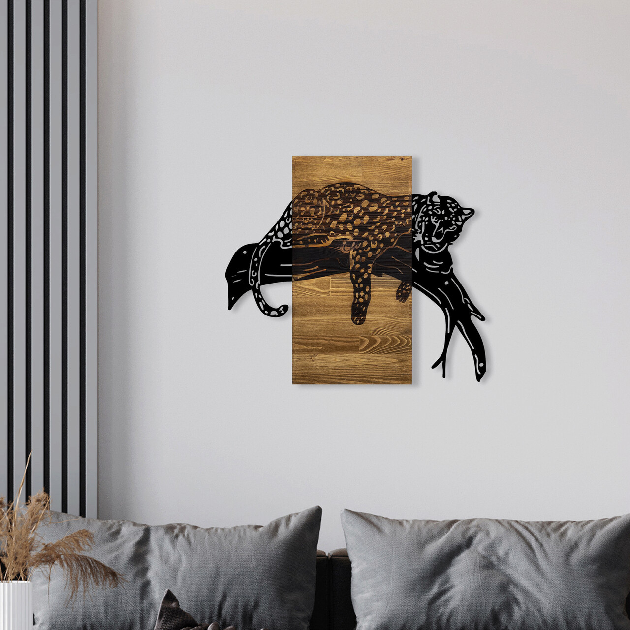 Decoratiune de perete, Leopard, Metal/lemn, Dimensiune: 66 x 3 x 58 cm, Nuc / Negru