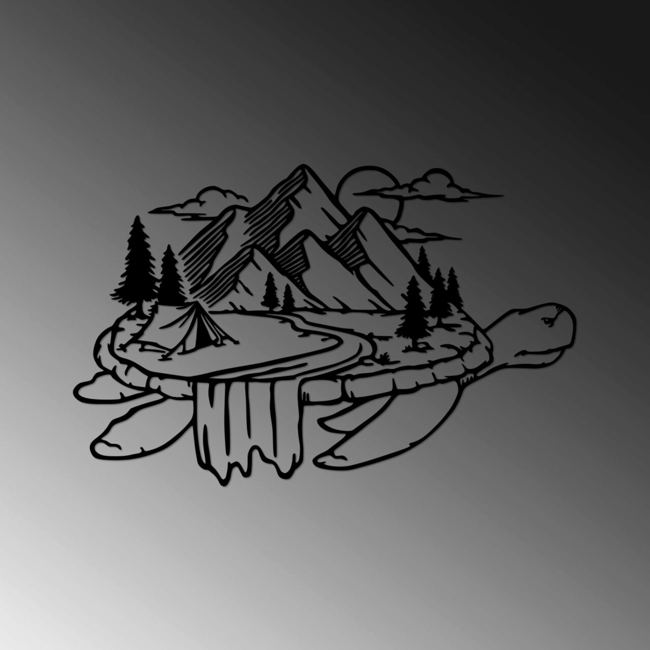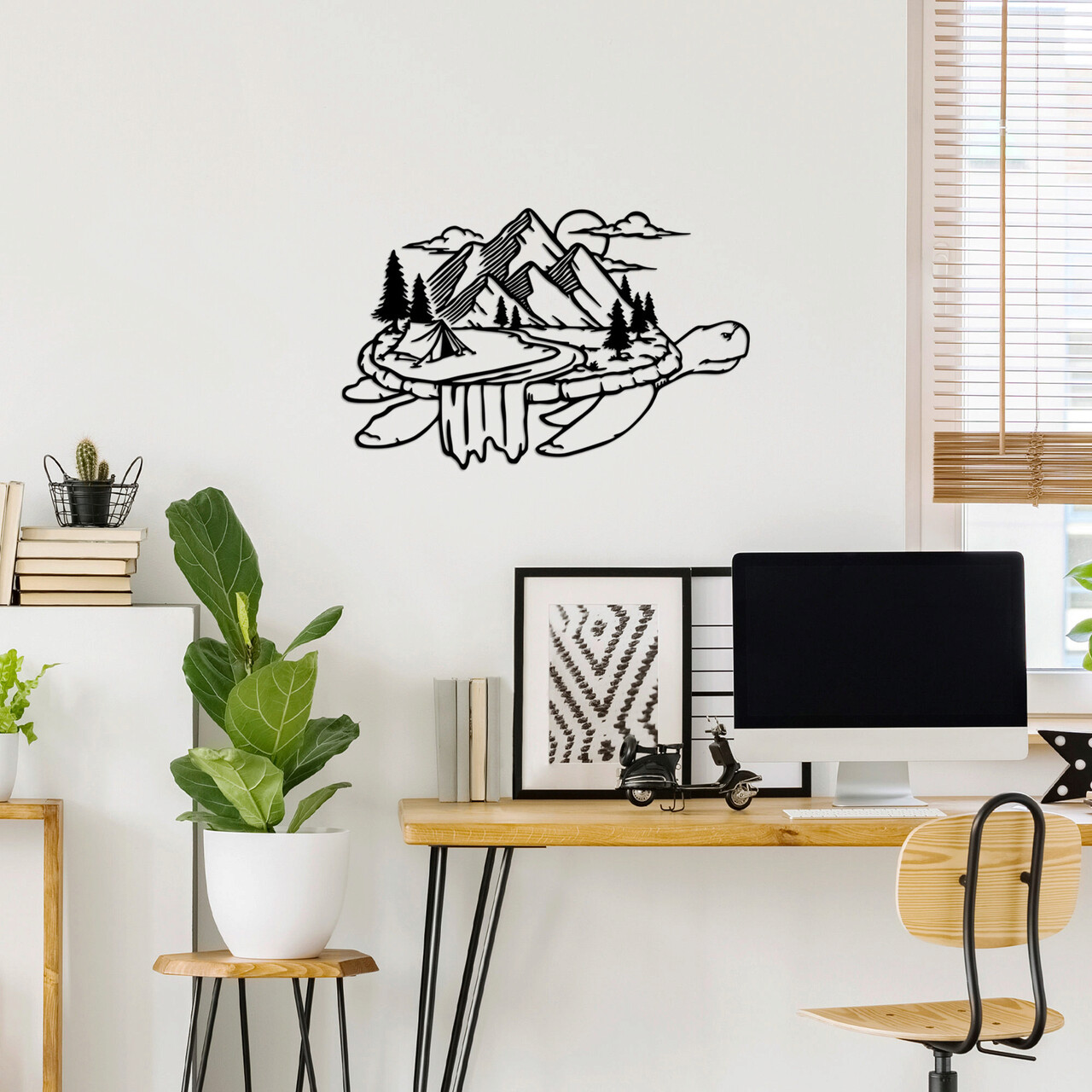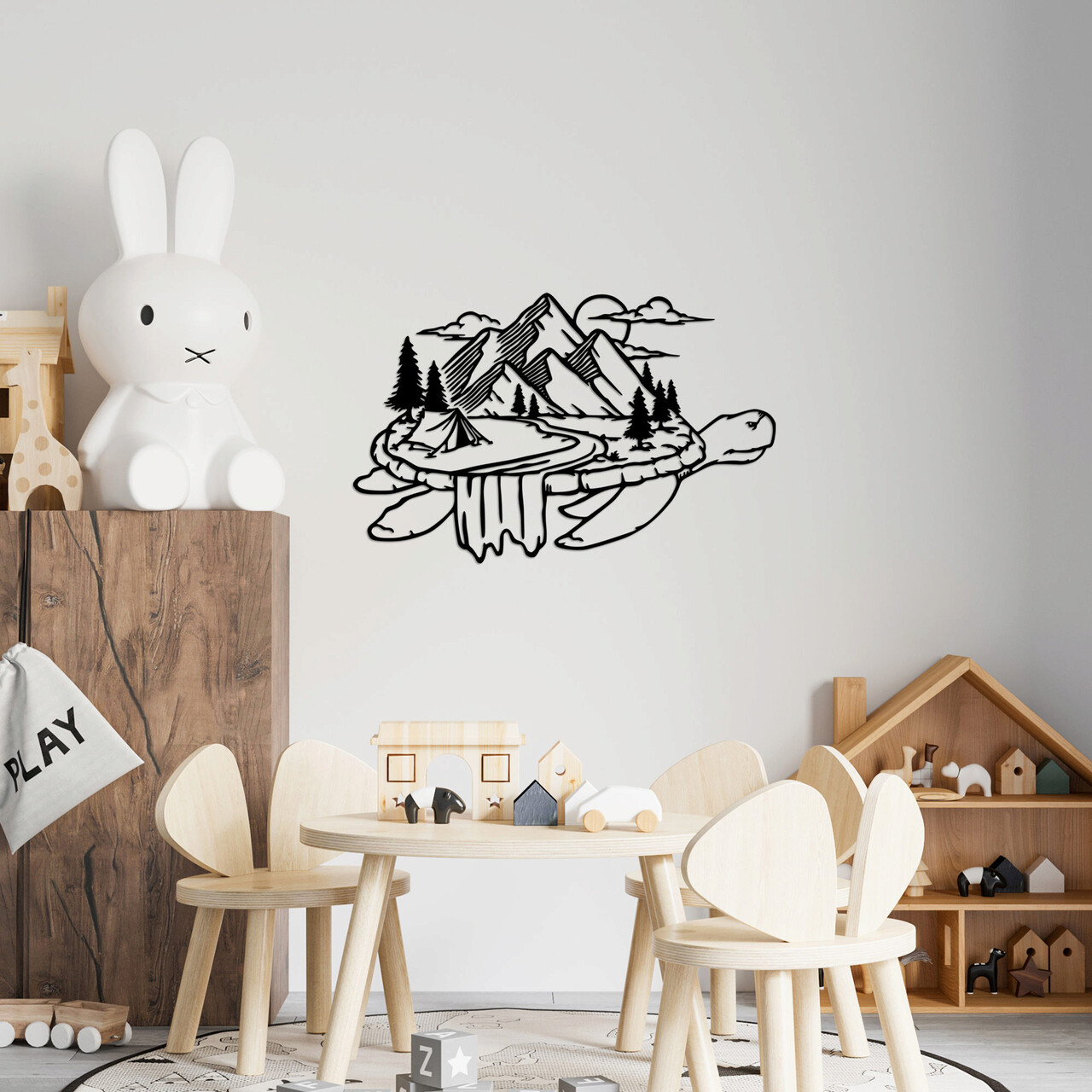 Decoratiune de perete, Life On The Turtle, Metal, Dimensiune: 70 x 45 cm, Negru