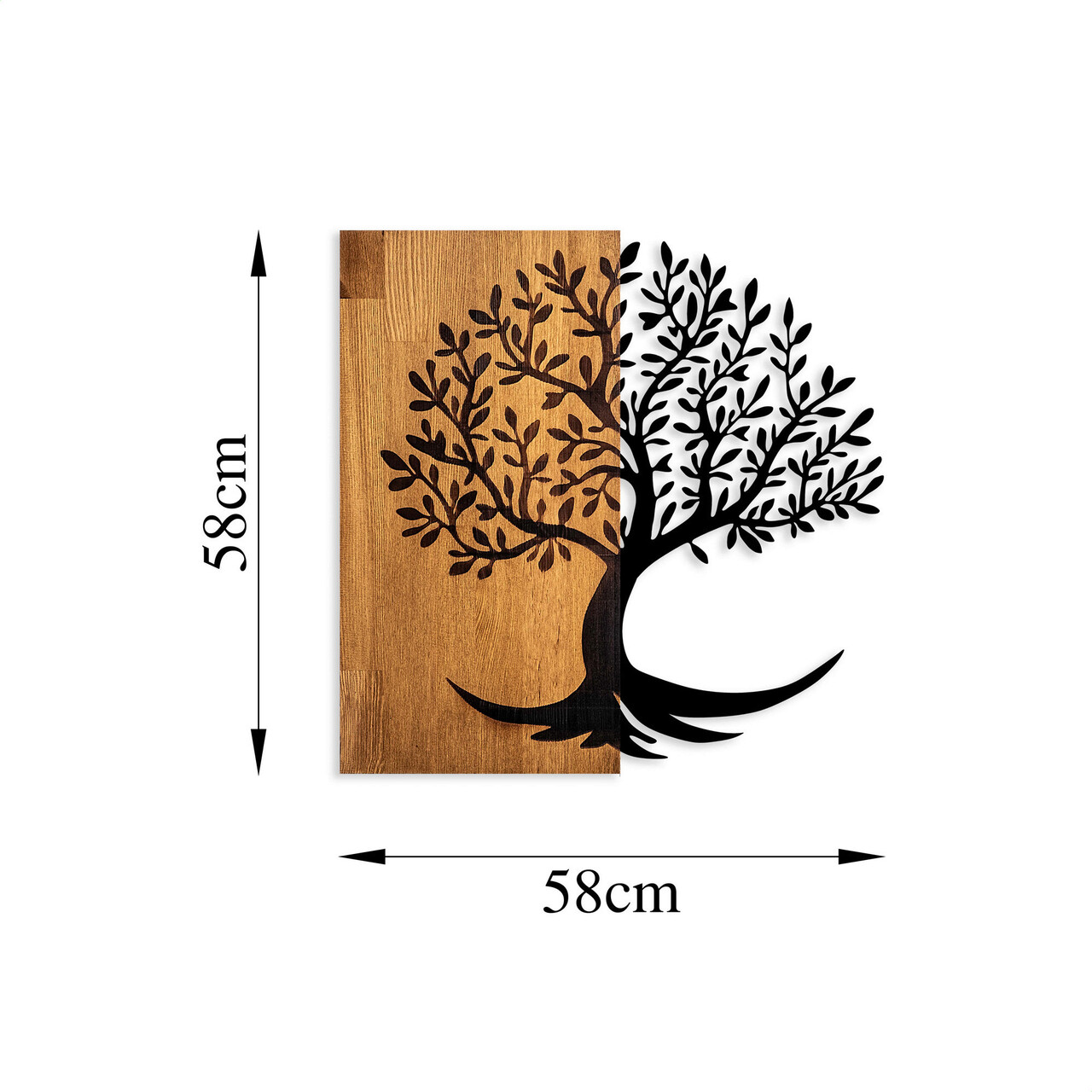Decoratiune de perete, Lime Tree, Lemn/metal, Dimensiune: 58 x 58 cm, Nuc / Negru