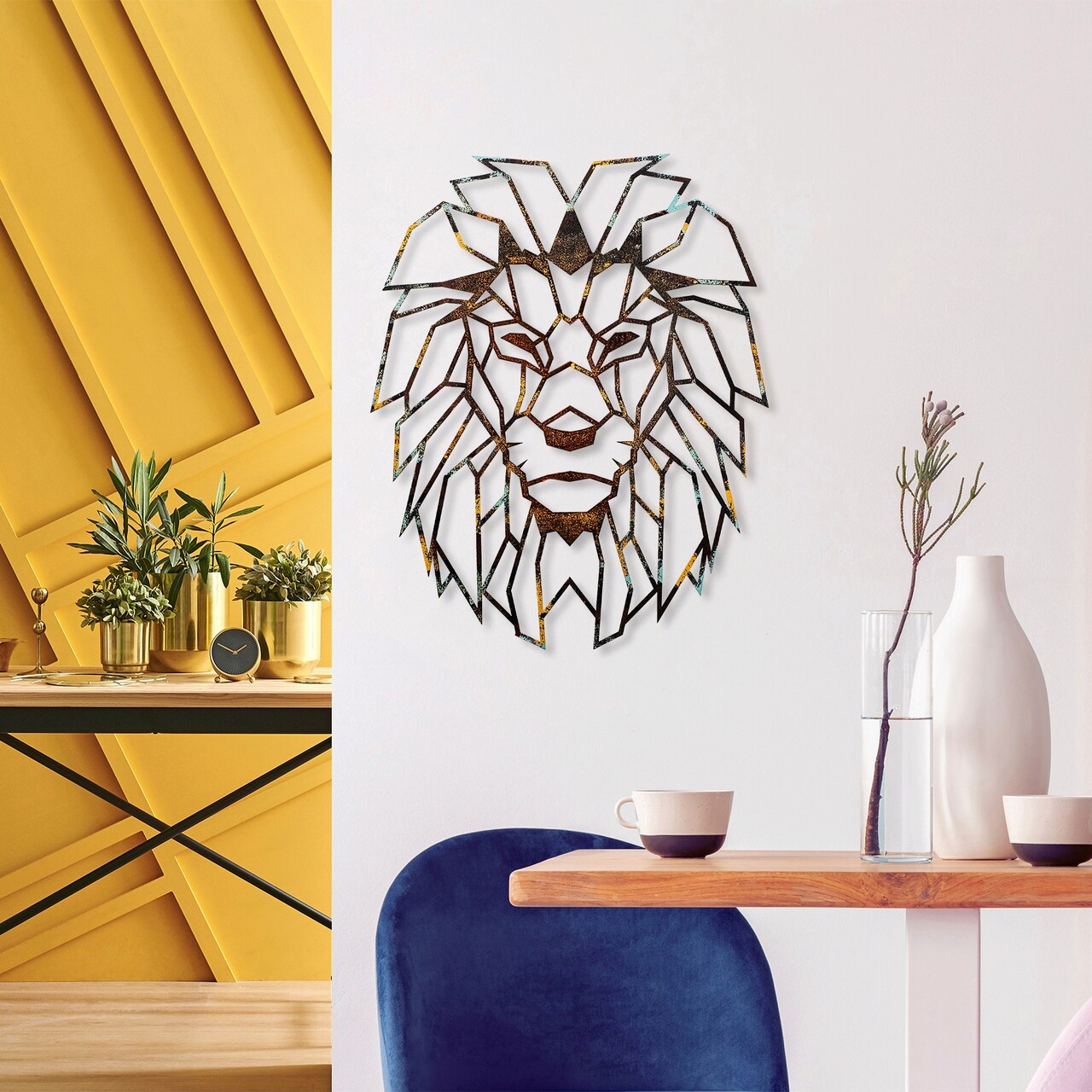 Decoratiune de perete, Lion, Metal, 40 x 50 cm, Multicolor