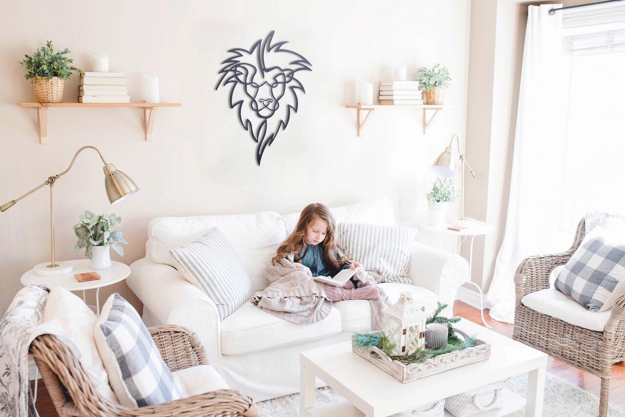 Decoratiune de perete, Lion, Metal, 50 x 70 cm, Negru