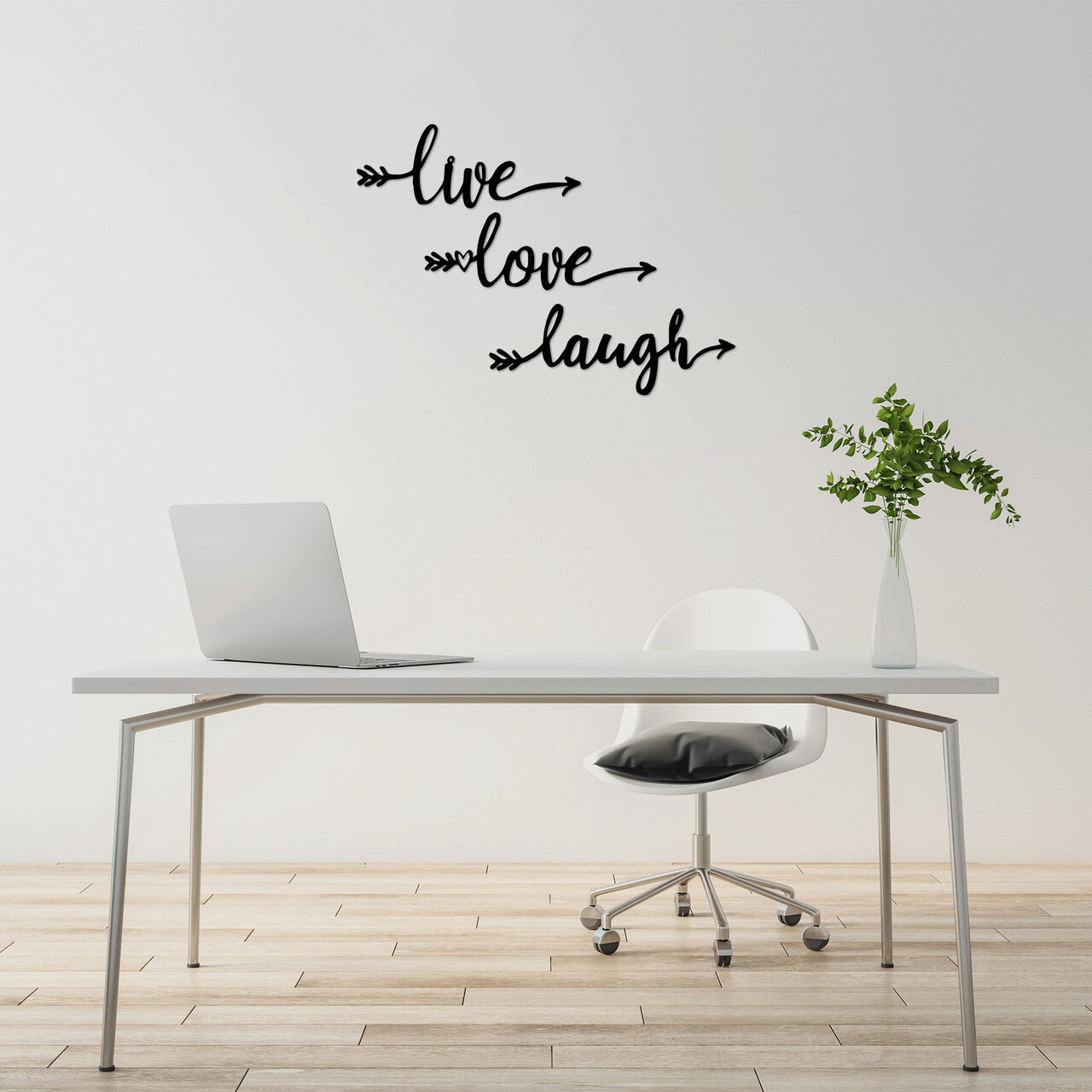 Decoratiune de perete, Live Love Laugh, Metal, 93 x 66 cm, Negru