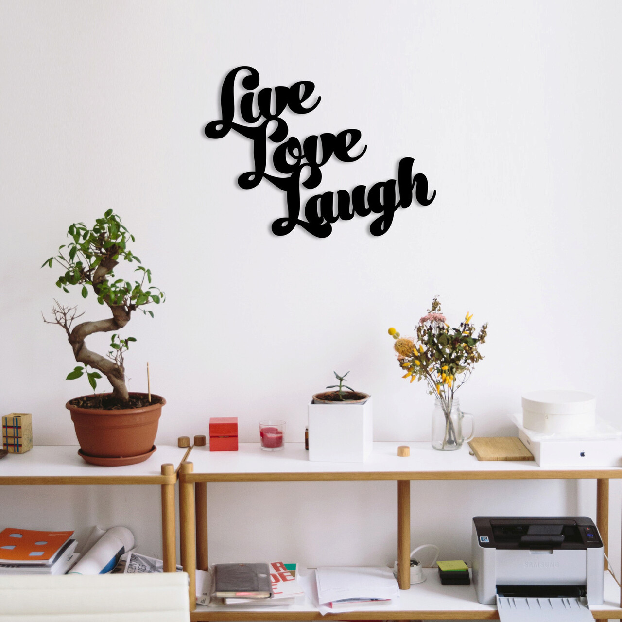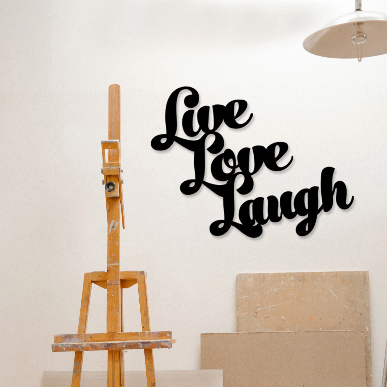 Decoratiune de perete, Live Love Laugh Metal Decor, metal, 52 x 38 cm, negru