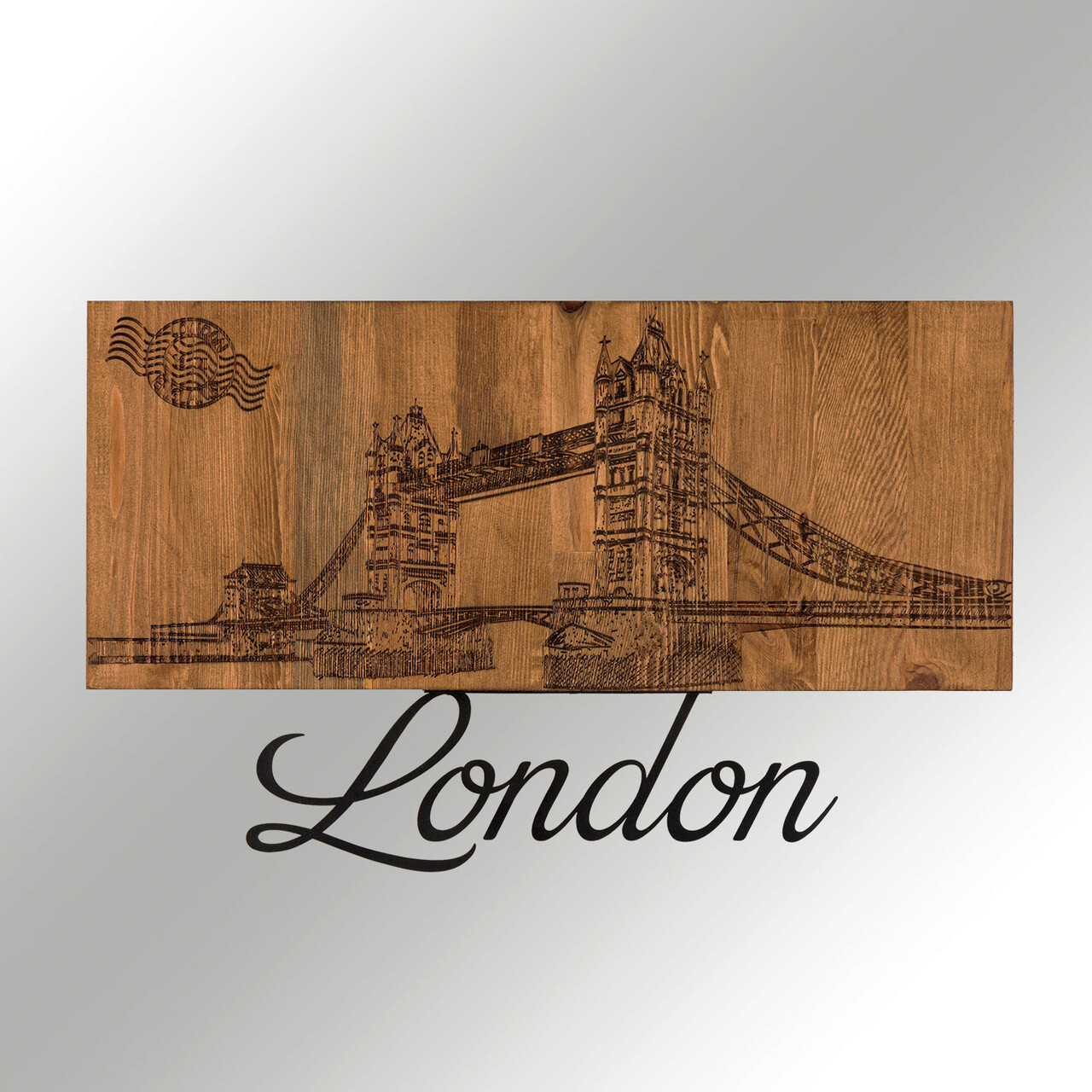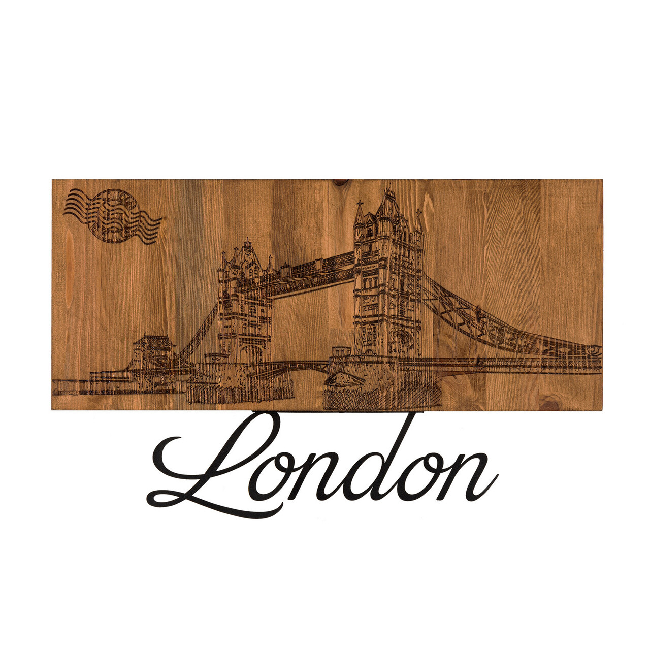 Decoratiune de perete, London, lemn/metal, 58 x 35 cm, negru/maro