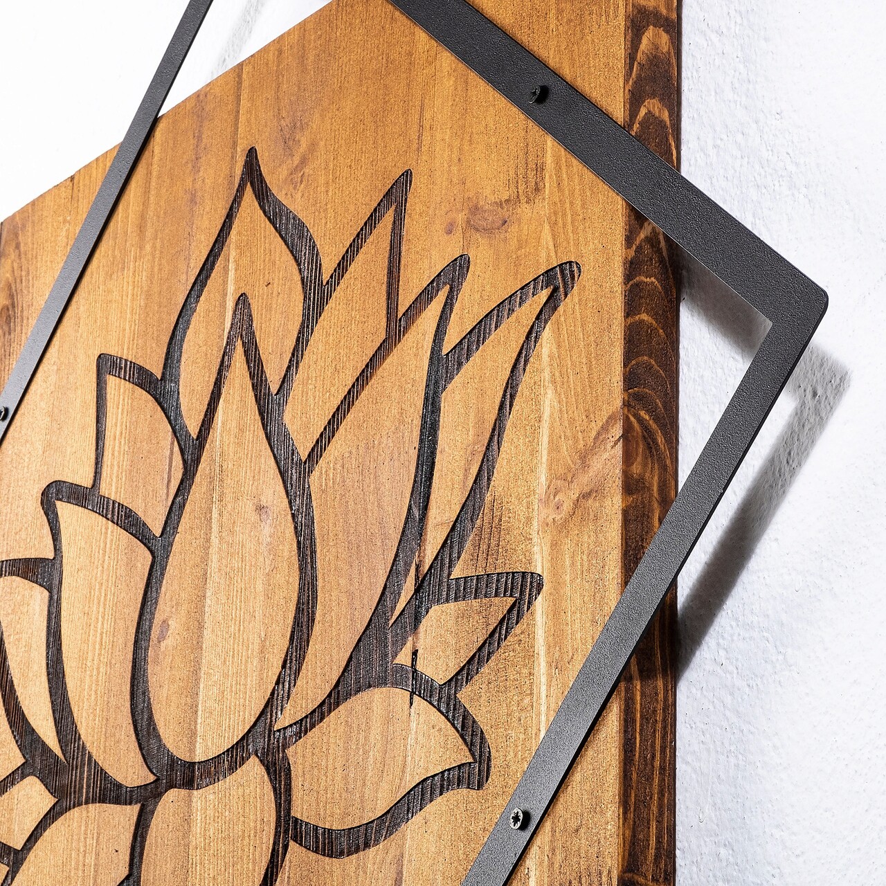 Decoratiune de perete, Lotus, 50% lemn/50% metal, Dimensiune: 54 x 54 cm, Nuc / Negru