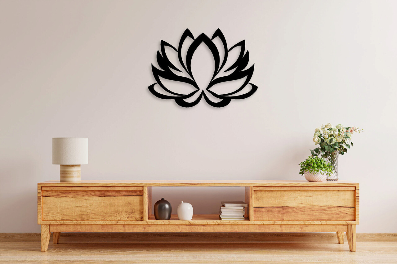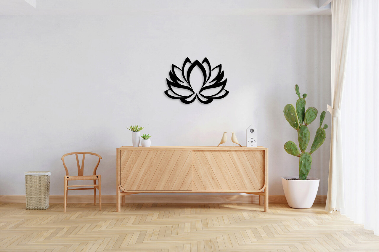 Decoratiune de perete, Lotus Flower, Metal, Dimensiune: 45 x 35 cm, Negru