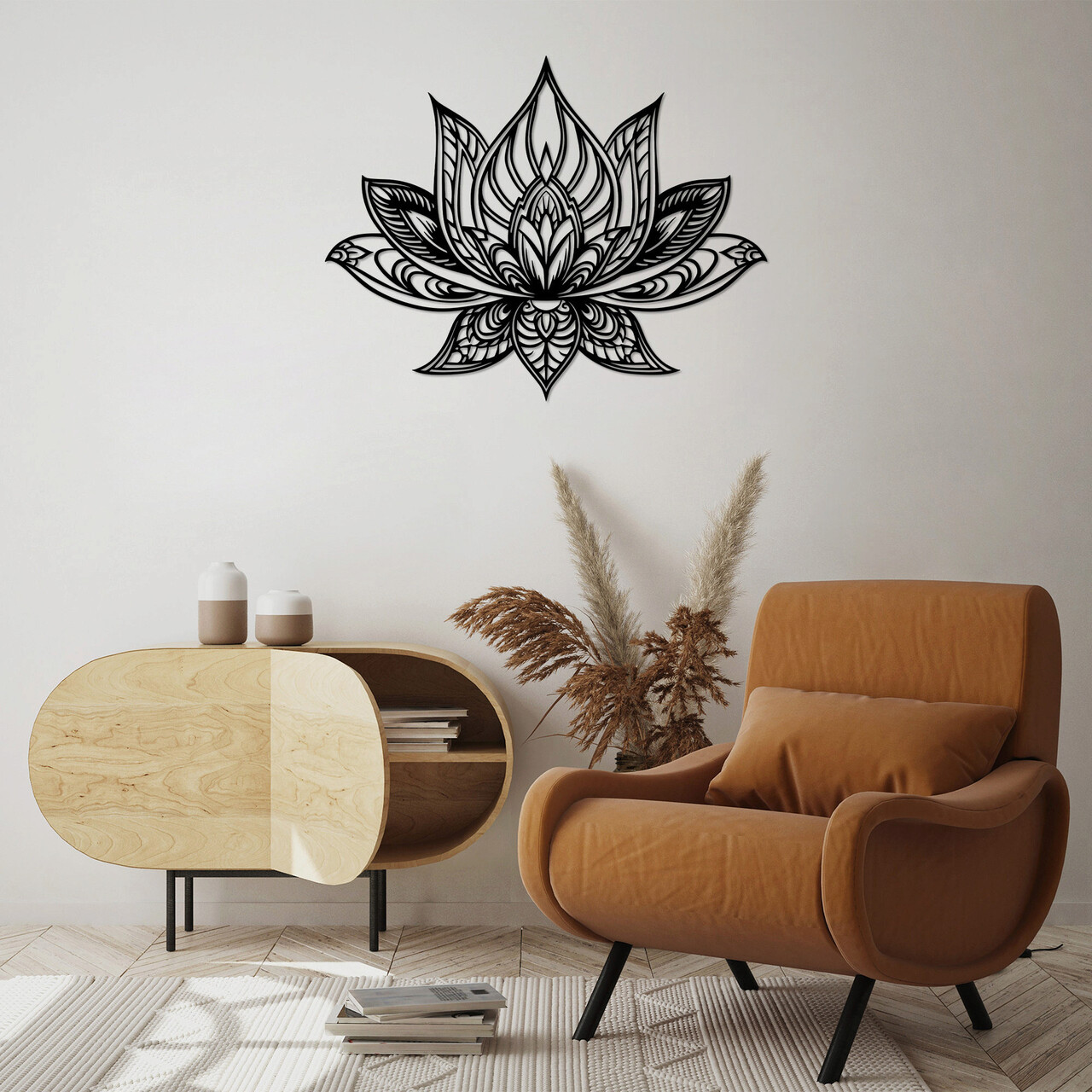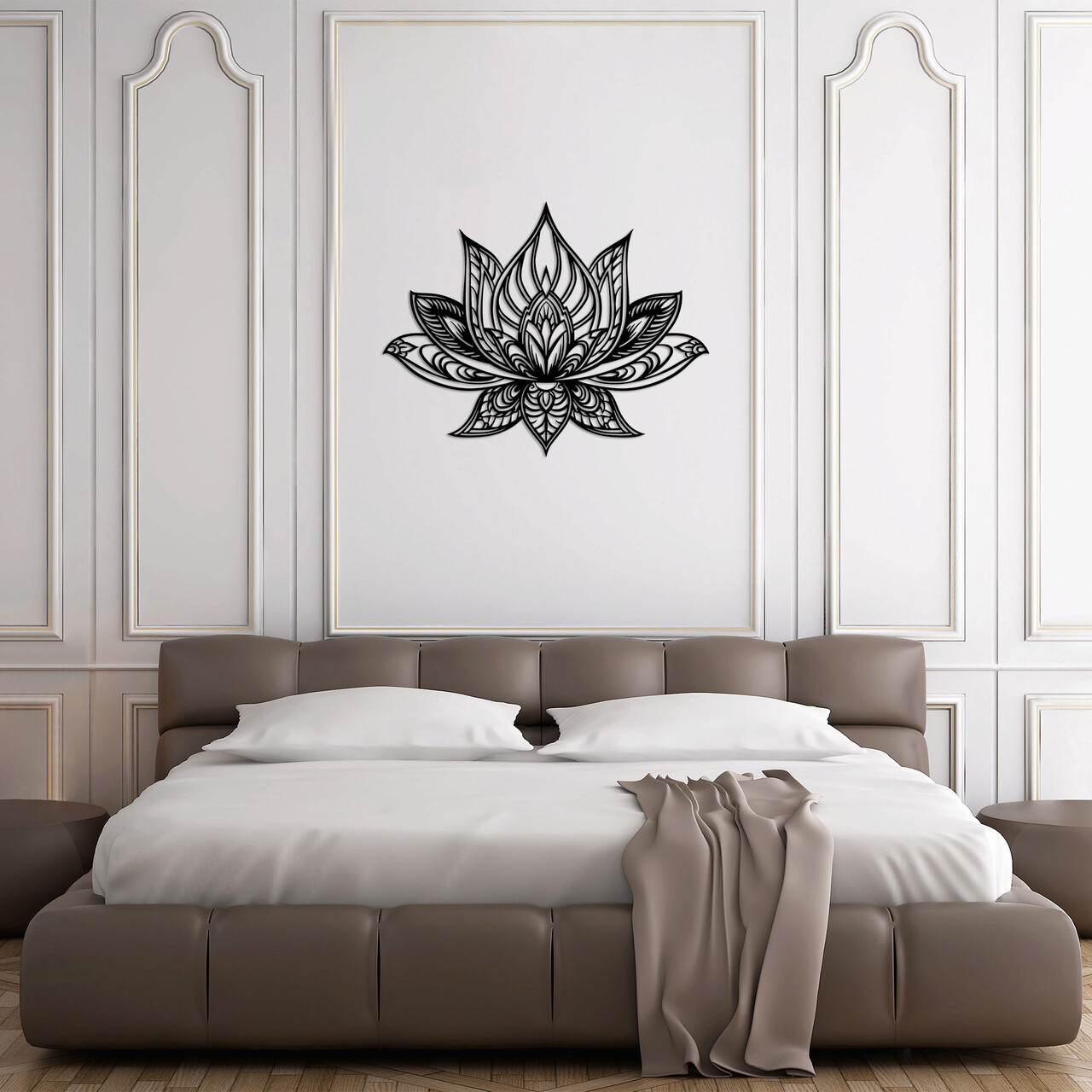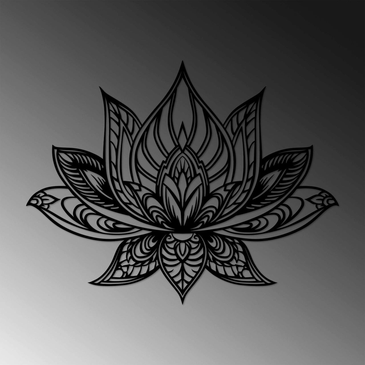 Decoratiune de perete, Lotus Flower, Metal, Dimensiune: 70 x 44 cm, Negru