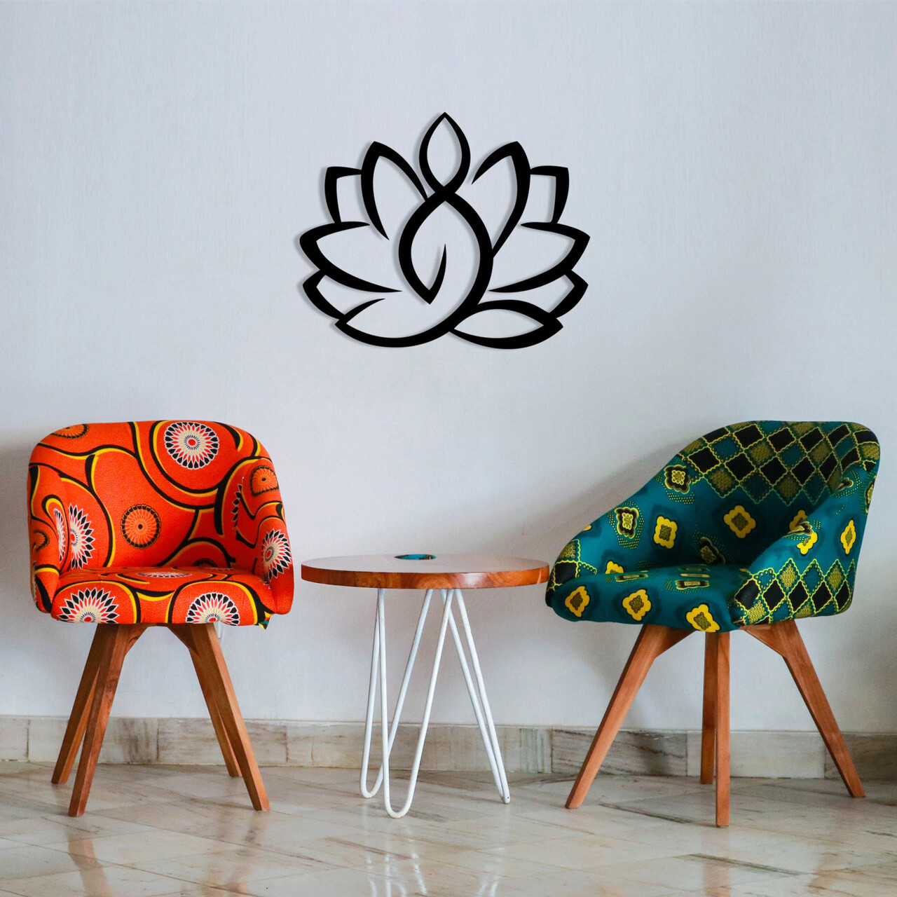 Decoratiune de perete, Lotus - M114, metal, 50 x 57 cm, negru