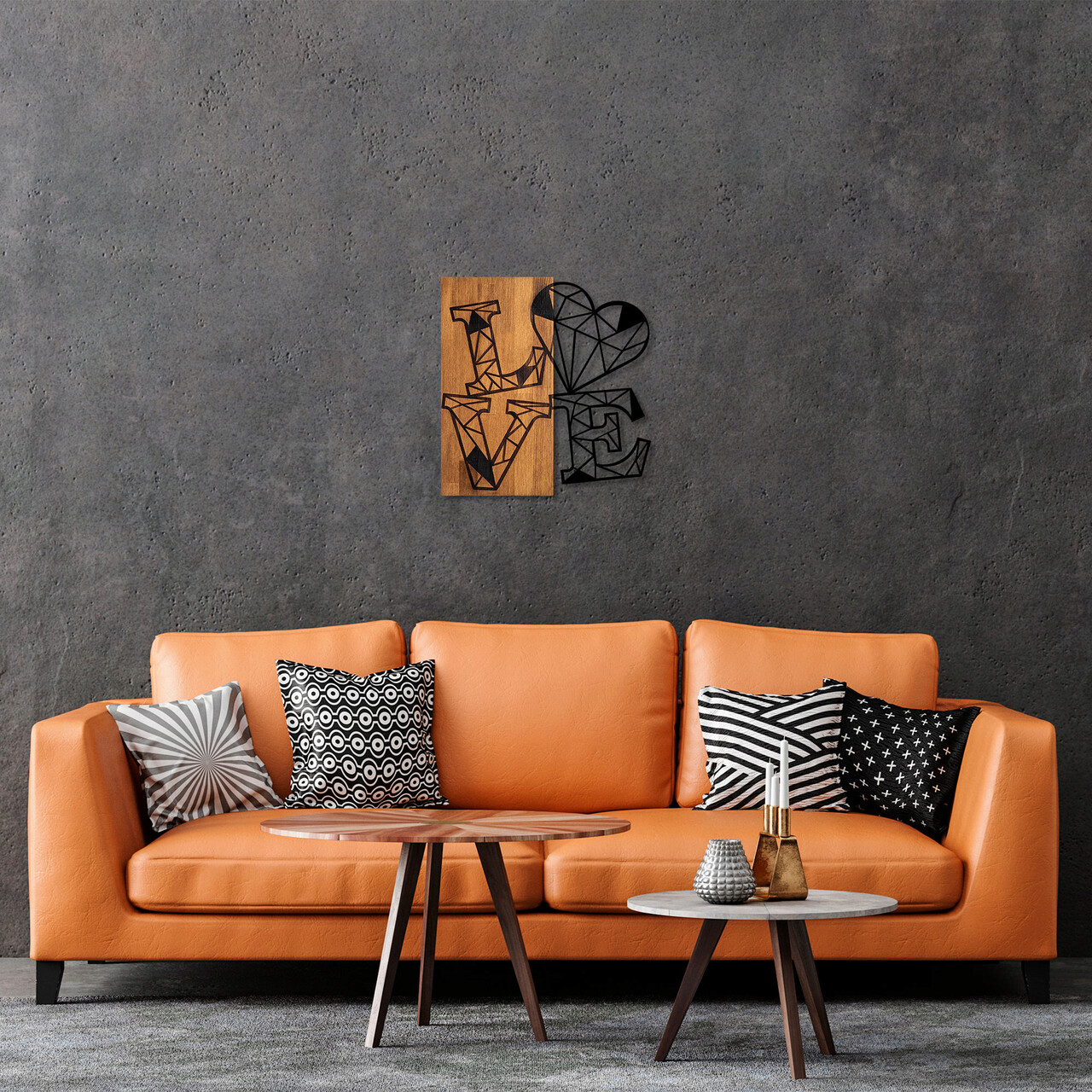Decoratiune de perete, Love 1, 50% lemn/50% metal, Dimensiune: 56 x 58 cm, Nuc / Negru