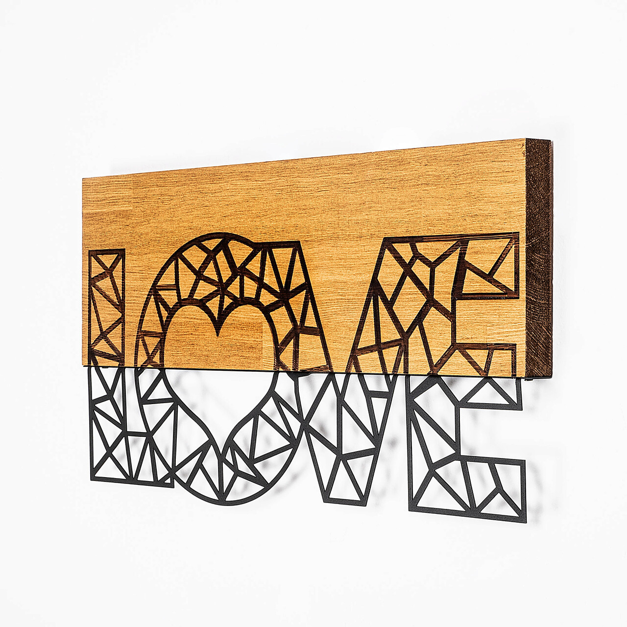 Decoratiune de perete, Love, 50% lemn/50% metal, Dimensiune: 58 x 3 x 30 cm, Nuc negru