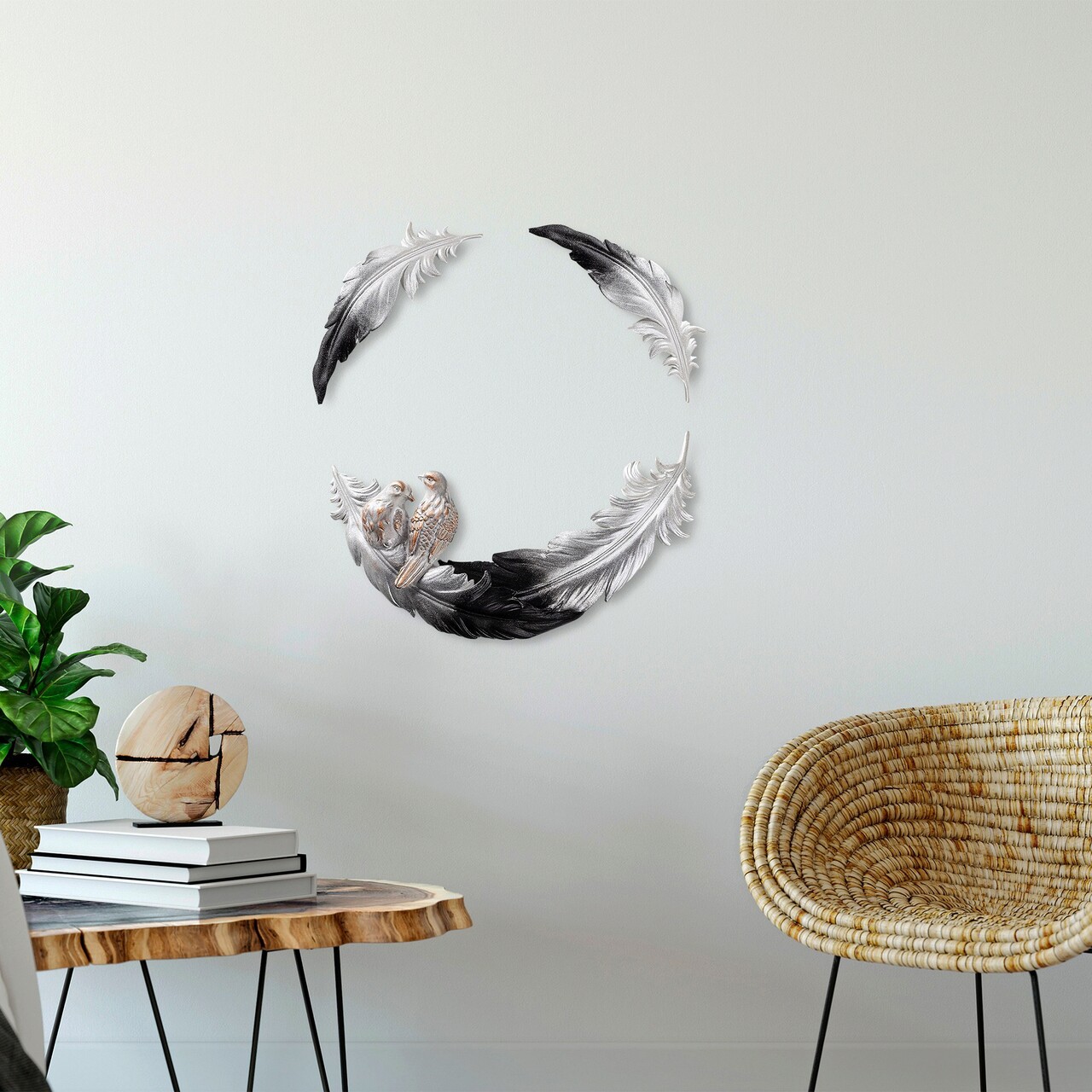 Decoratiune de perete, Love Birds, Poliester, Alb/Negru