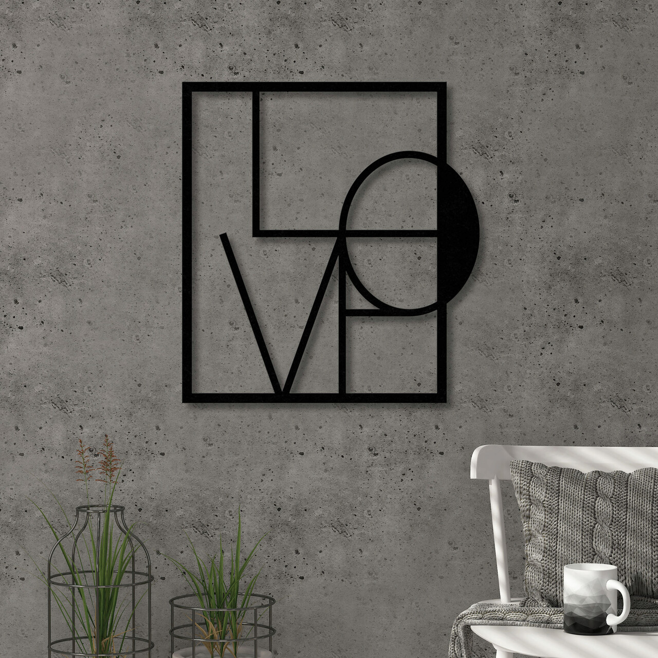 Decoratiune de perete, Love, Dimensiune: 40 x 40 cm, Negru