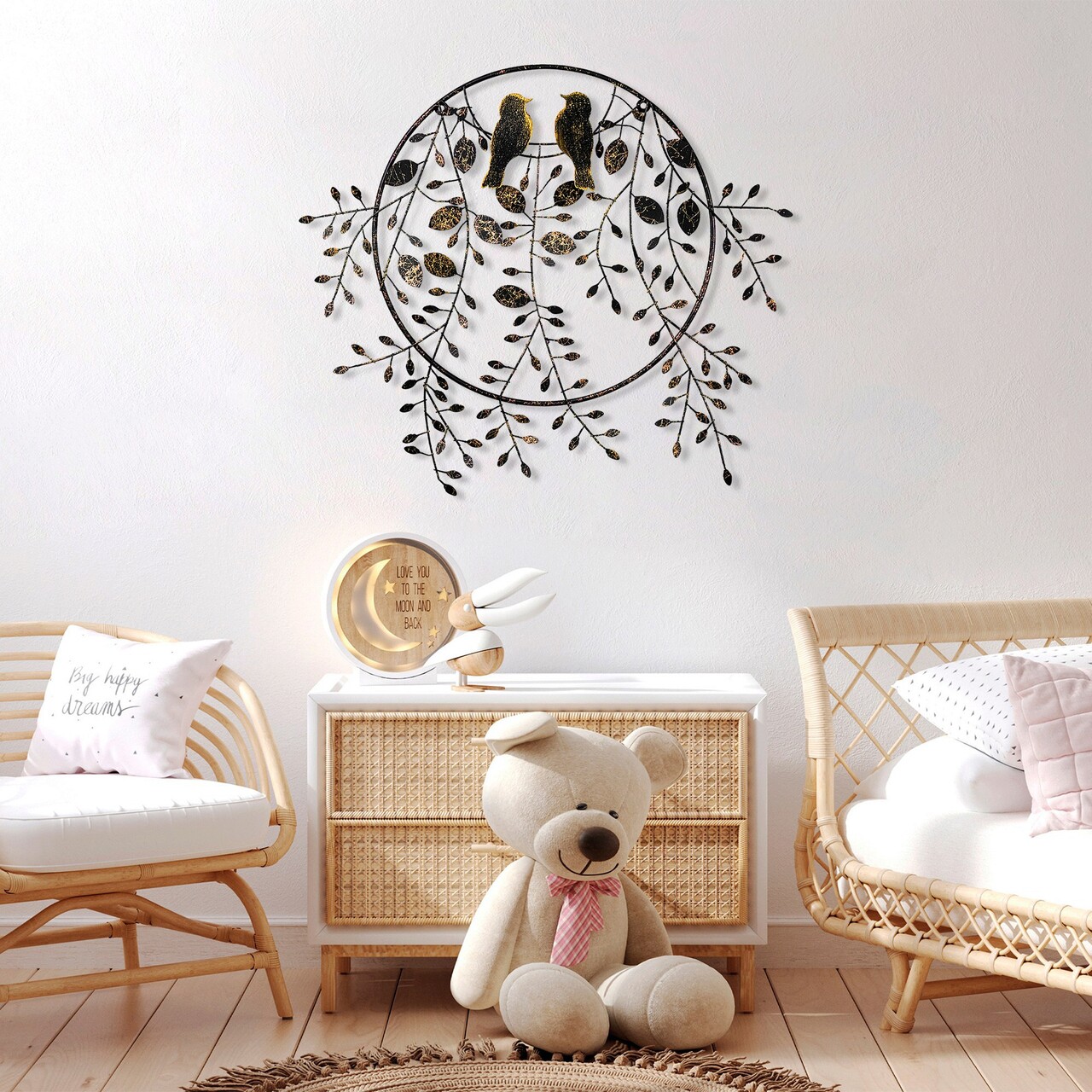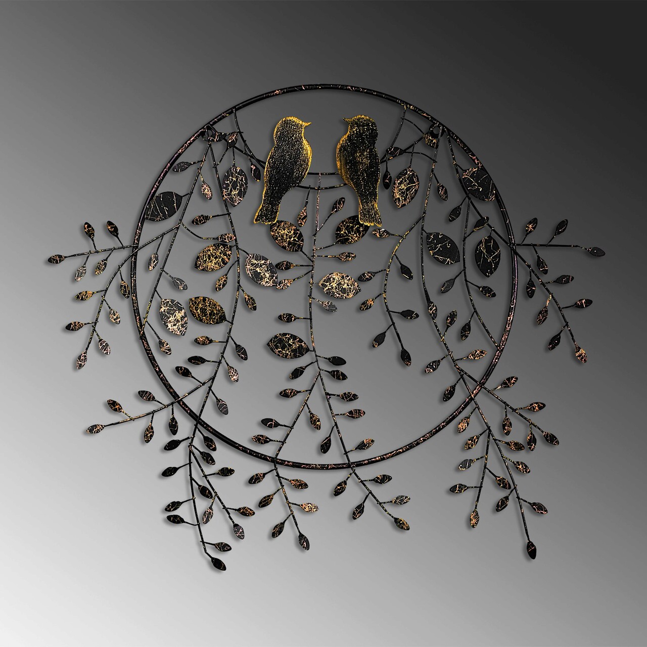 Decoratiune de perete, Love of Birds 2, Metal, Dimensiune: 86 x 75 cm, Multicolor