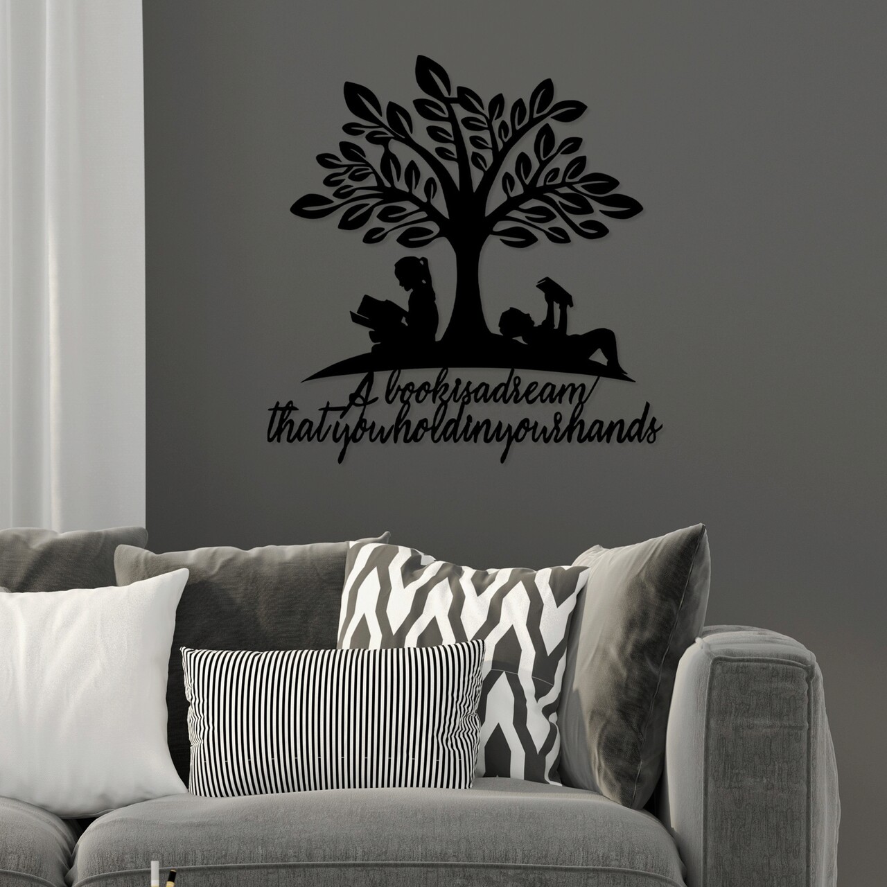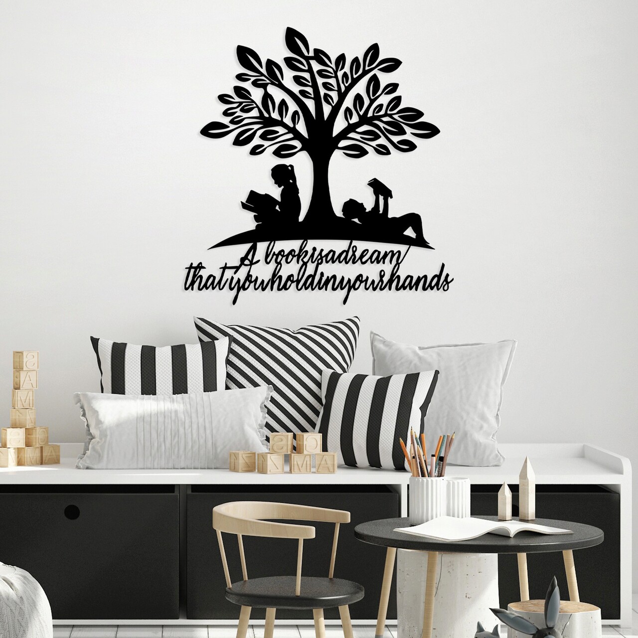 Decoratiune de perete, Love Of Books, Metal, Dimensiune: 82 x 85 cm, Negru