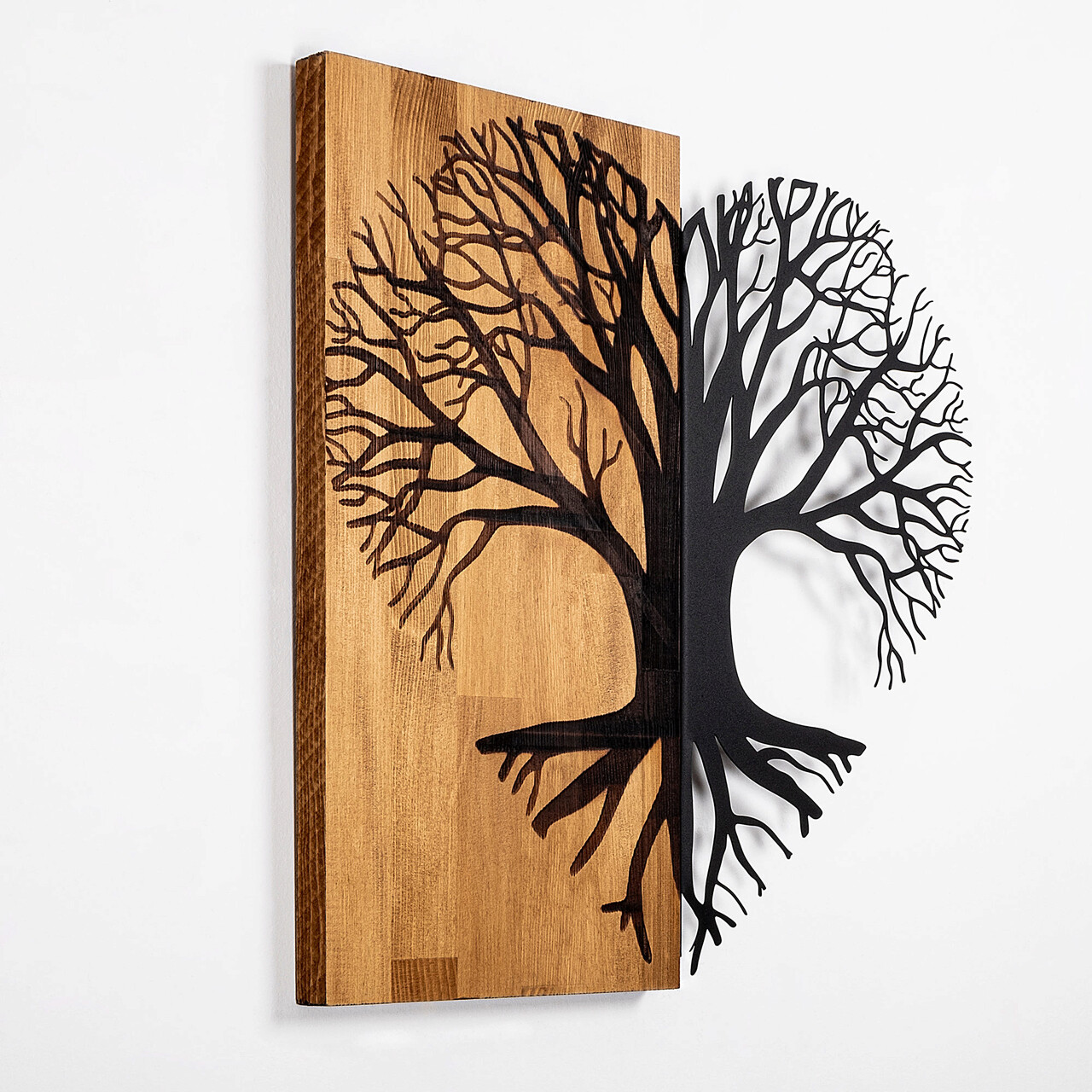 Decoratiune de perete, Love Tree, 50% lemn/50% metal, Dimensiune: 60 x 58 cm, Nuc / Negru